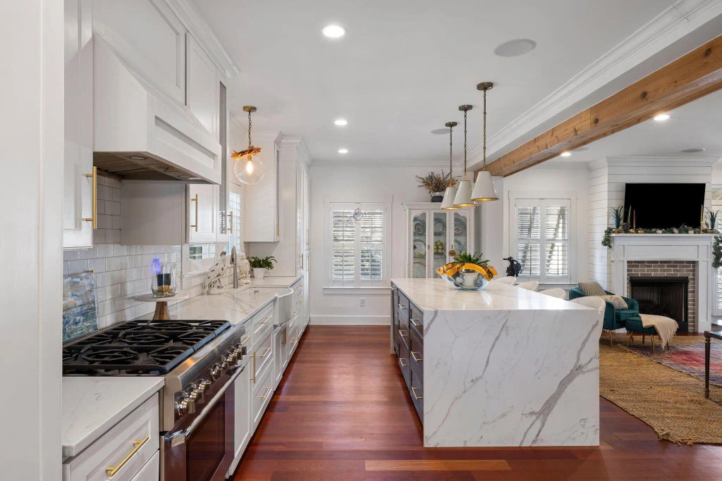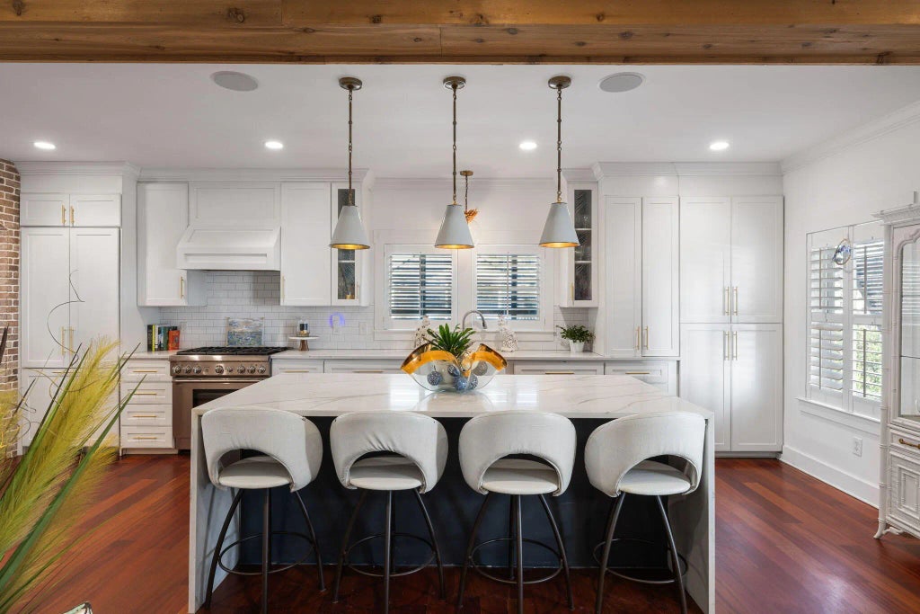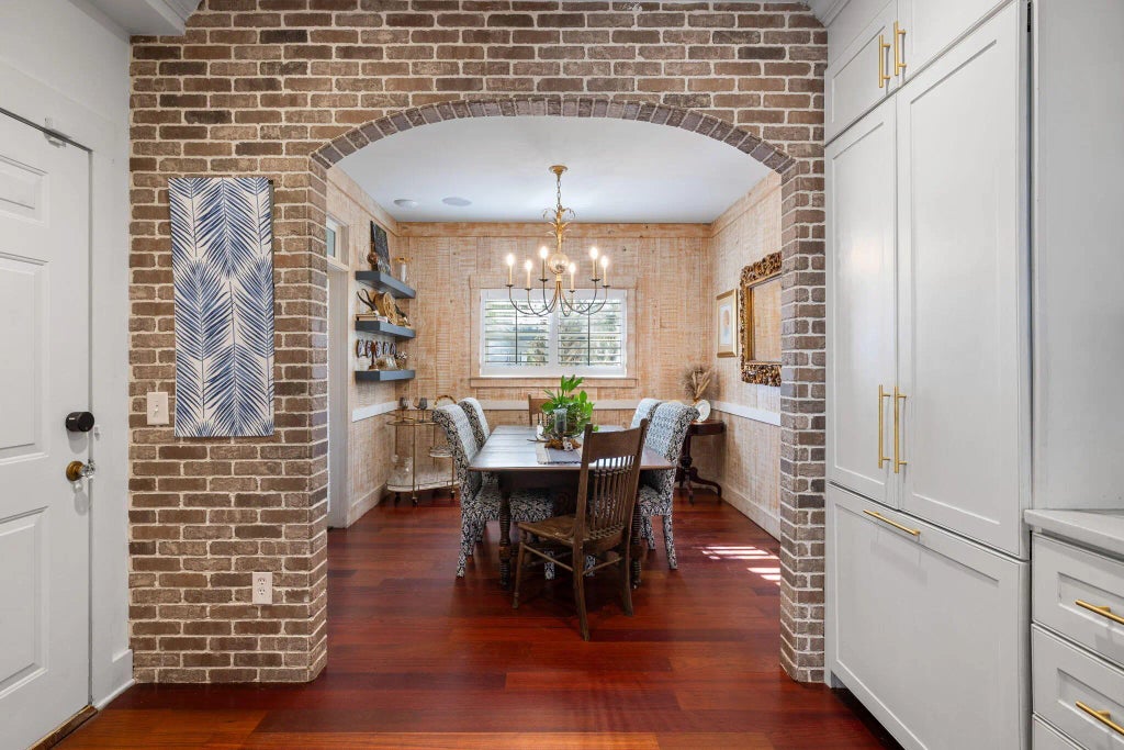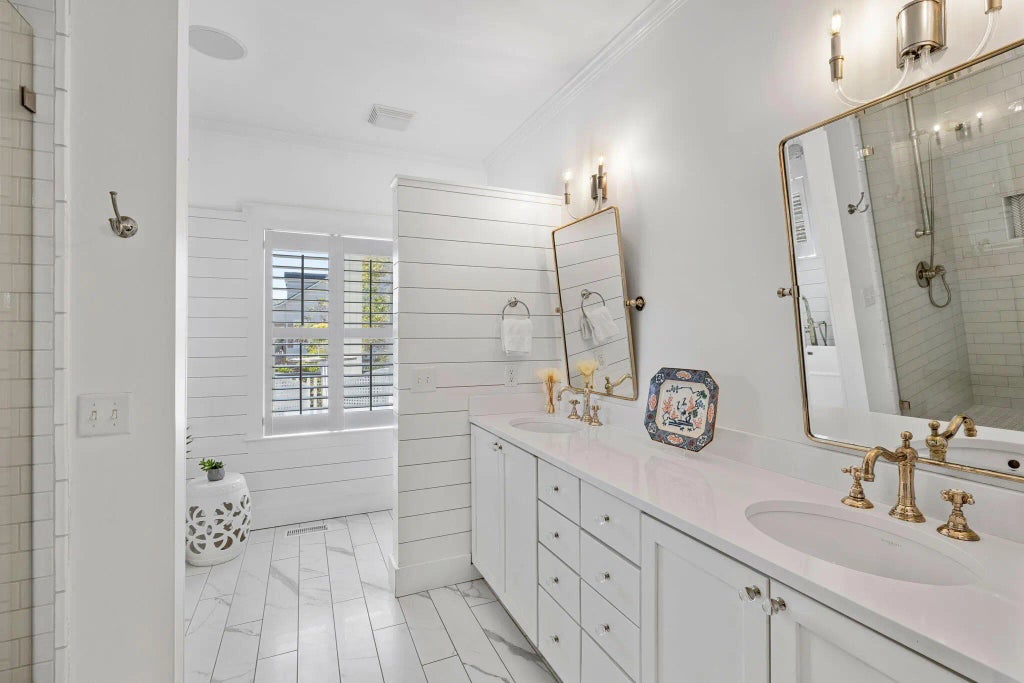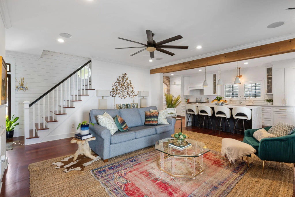 0.18 Stunning home in highly sought-after Old Village Landing! Open floor plan with high ceilings, hardwood floors and plantation shutters. Cedar beam accents the spacious kitchen -large kitchen island with bar seating for 4, custom refrigerator, gas range, undermount microwave drawer, granite countertops, farm sink and plentiful cabinetry. Stunning brick facade complements the dining room and nods to the historic charm of Charleston! Living room has a gas burning fireplace flanked with brick & shiplap and built-in cabinets - perfect space for a wet bar! Primary bedroom is downstairs with a separate foyer -great space for reading room or even an office. The built-in bench seats offer additional storage. Primary bedroom has 2 walk-in closets. Primary bathroom has shiplap walls, dual vanity,tiled shower and large soaking tub. Additionally on the first level is a powder room and a mudroom/drop spot. Upstairs you will find another living room with 3 secondary bedrooms. Each secondary bedroom has ensuite bathrooms. Huge laundry room with 2 closets for additional storage. Large double porches on both levels are perfect for outdoor entertaining! Enjoy the sunsets from the top porch and peeks of the marsh and Sullivan's Island lighthouse! Sunken cypress garage doors open to enormous garage level. Space for large cars, golf cart and tons of room for storage of beach gear, bikes and yard supplies. Fenced backyard with outdoor shower to rinse the sand off from those beach days. Centrally located in Mt. Pleasant, Old Village Landing is just five minutes from Sullivan's Island and 10 minutes to Downtown Charleston! Mt Pleasant Academy and Moultrie Middle School are walking/biking distance. Enjoy the best of Lowcountry living with walks to Pitt St Bridge and Alhambra Hall, golf cart rides to Pitt Street with local dining and shops or go grab fresh-caught seafood from Shem Creek!