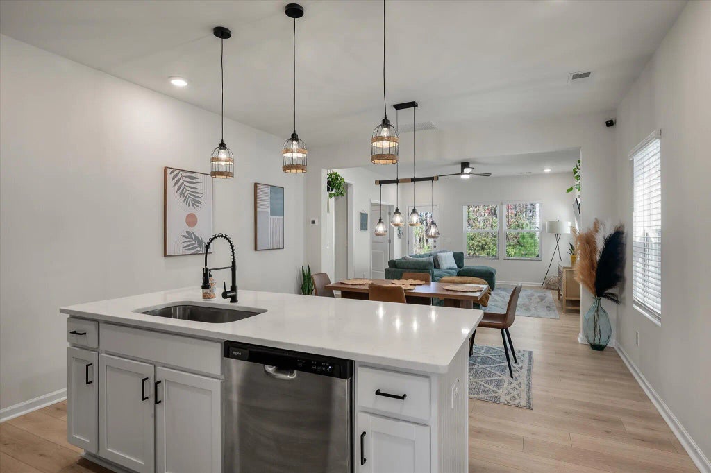 0.10 Welcome to this nearly new, barely-lived-in FULLY FURNISHED**home in the highly sought-after Nexton, North Creek Village, a community no longer building in this section--making this opportunity incredibly rare!! Occupied for just six months before a military relocation, this modern 4-bedroom, 3-bath beauty feels brand new. The thoughtful layout offers a guest suite on the main floor with a full bathroom, perfect for visitors or multigenerational living. Upstairs, you'll find a spacious loft ideal for a second living space, playroom, office, or media area. Bright, contemporary finishes flow throughout, and the open-concept design creates the perfect backdrop for everyday living and entertaining.**downstairs couch & washer/dryer DO NOT convey