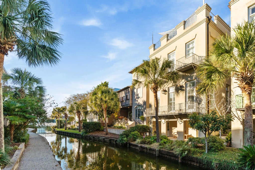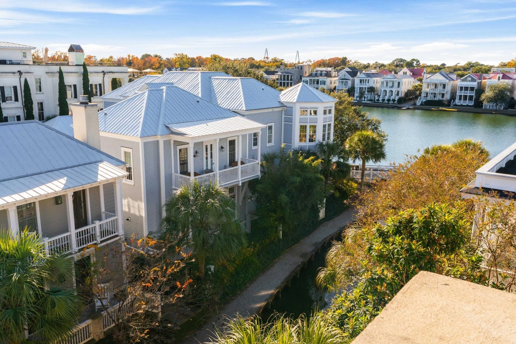 0.08 Welcome to 35 John Galt Way, a Charleston single located on a canal in I'On, offering stunning rooftop terrace views of I'On's Westlake and beyond. Enter through an ornate iron gate to a beautifully landscaped brick courtyard and loggia. This four-bedroom, four-and-a-half-bath home features a low-maintenance yard and lives like an elegant European townhome.The first level boasts 11-foot, 6-inch ceilings, beautiful heart pine floors, and abundant natural light through floor-to-ceiling windows with plantation shutters throughout. The spacious kitchen offers ample marble countertop space, including an island, and is equipped with GE and KitchenAid appliances. A separate, high-ceilinged dining room with floor-to-ceiling windows overlooks the courtyard.Large bookcases flank the gas fireplace in the living room, creating an inviting space to relax or enjoy canal views from the room's two Juliet balconies, where ducks and turtles make their morning rounds. On the ground level are two rooms, including an ensuite bedroom currently used as a media room and an office. An elevator and staircase serve all levels of the home, from the ground floor to the rooftop terrace, making this a wonderful home for entertaining. The spacious primary ensuite bedroom is located on the second floor and features high ceilings, floor-to-ceiling windows, a gas fireplace, and exterior doors leading to a Juliet balcony with canal views. Down the hall, past the laundry room, is another ensuite bedroom currently used as an upstairs office and sitting room. An additional ensuite bedroom is located above the one-car garage and adjacent parking pad. The award-winning I'On community is near downtown Charleston and offers nearby lakes, restaurants, shops, and walking trails. Enjoy a truly unique lifestyle in this beautiful home, which is built with termite- and thermal-resistant precast, foam concrete (AAC) block construction.