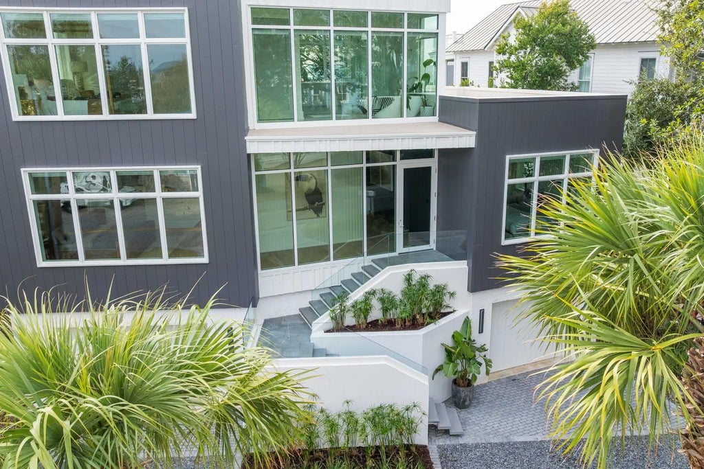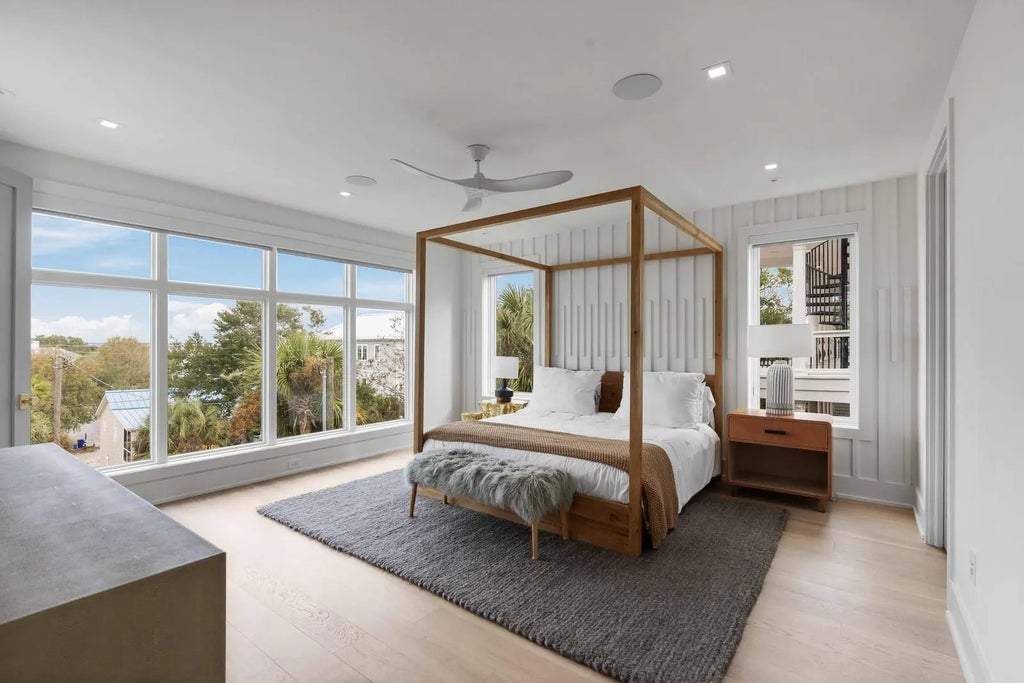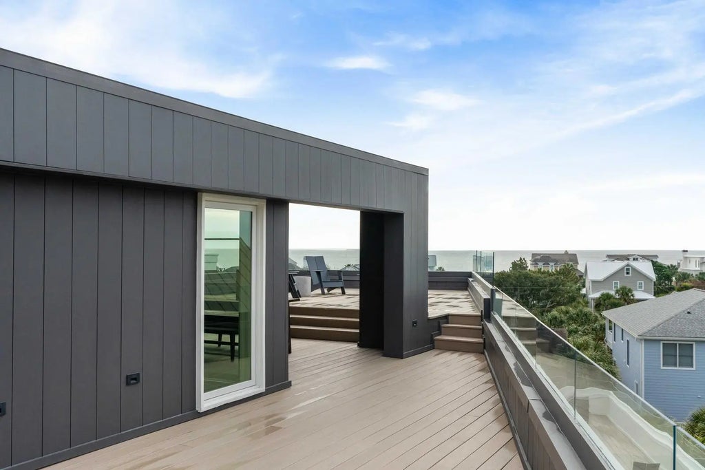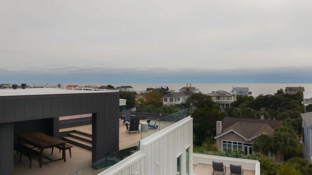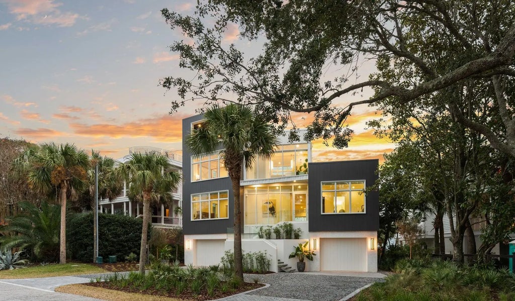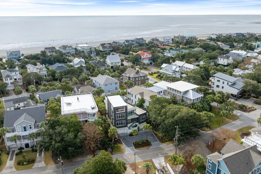 0.19 Perched at one of the highest points on Isle of Palms, 304 Carolina Boulevard is modern coastal living at its finest. Designed by The Middleton Group, the home makes a statement the moment you arrive, soaring two stories with floor-to-ceiling storefront glass, glass railings, subtle under-stair lighting, and integrated planter features that create a sleek, sculptural facade. A rare circle drive welcomes guests, framed by fifty privacy palms and mature oaks, all highlighted with ReMark Studio landscaping and uplighting that turns the property into a serene coastal vignette.Inside, you're greeted with a stunning gallery-style entry, warm wood floors, custom millwork, and polished finishes that guide you straight into the sunken living room. Here, an 80-inch dual-sided linear fireplace, a custom L-shaped sofa, and a disappearing wall of sliding glass create the ultimate indoor-outdoor flow. Step outside to the resort-style heated/chilled pool, fully equipped outdoor kitchen, and multiple lounging areas designed for year-round enjoyment. A whole-home integrated audio system keeps music flowing effortlessly throughout every interior room, terrace, and even the rooftop. The gourmet kitchen centers around a waterfall-edge island and is outfitted with high-end appliances, bespoke cabinetry, and a hidden pantry. A secondary scullery with a second dishwasher and curated bar keeps the main kitchen pristine. Custom powder-coated steel doors (crafted by Palm City) open to the wraparound terraces, including dual dining room doors that extend your entertaining space outside. Two spacious guest suites, each with en-suite baths and finished closets, complete this level. At the center of the home, a dramatic interior glass staircase rises through all levels, with millwork that continues seamlessly through the halls, bedrooms, and around the fireplace. An elevator finished to match the millwork runs from the garage all the way to the rooftop, mixing architectural impact with everyday convenience. On the primary level, both bedrooms offer peaceful retreats. One opens to a wraparound porch with sweeping ocean views; the other offers a more private sanctuary. Spa-inspired baths feature wall-mounted fixtures, an oversized dual-head shower, dual custom closets, a soaking tub, and thoughtful storage. A conveniently located laundry room serves this floor. The rooftop is nothing short of spectacular, glass railings frame panoramic views of the Atlantic Ocean, Morris Island, Sullivan's Island Lighthouse, the Ravenel Bridge, and the Intracoastal. A covered lounge, full bar, half bath, and outdoor kitchen create the perfect setting for sunset cocktails, gatherings, or quiet moments above it all. Downstairs, the ground level reveals some of the home's most impressive surprises: a climate-controlled five-car garage with abundant storage, EV charging, and full dehumidification, ideal for car enthusiasts and collectors. A custom powder-coated steel door continues the home's design language, while a dedicated theater room offers an intimate cinematic escape. With 2,500 sq. ft. of outdoor living across terraces, porches, and the rooftop, the home is finished with selections from Kelly Wearstler, Sean Lavin, Italian luxury brands, Toto, Brizo, and more, creating a refined modern-coastal aesthetic rooted in craftsmanship. Located outside the flood zone, and just blocks from the beach path and adjacent to Breach Inlet, the property offers peace of mind with an elevated coastal lifestyle. All of Charleston's dining, shopping, and culture are just minutes away. Now complete and move-in ready, 304 Carolina Boulevard is a true coastal sanctuary with every detail curated, every view intentional, and every space designed to elevate the way you live.