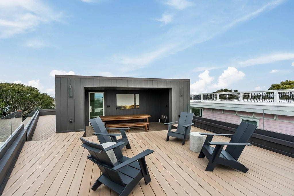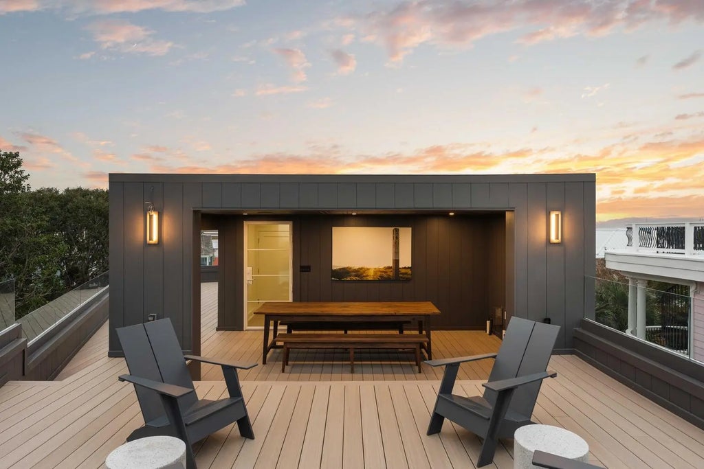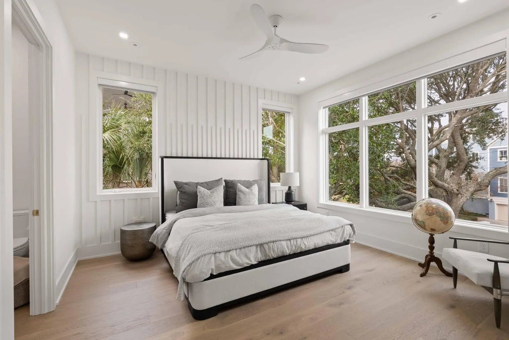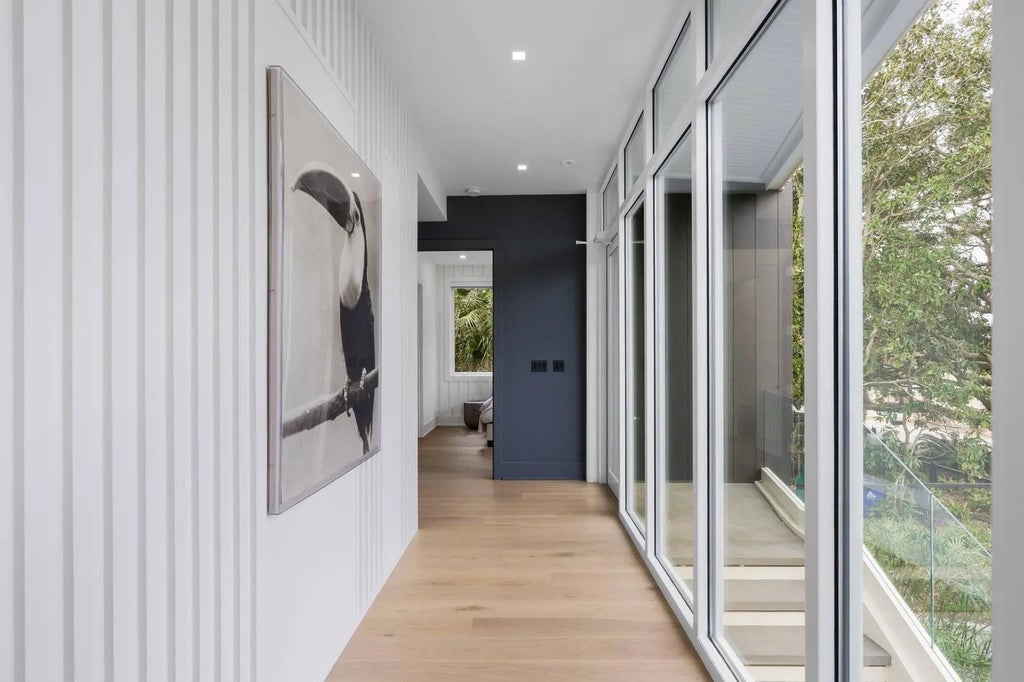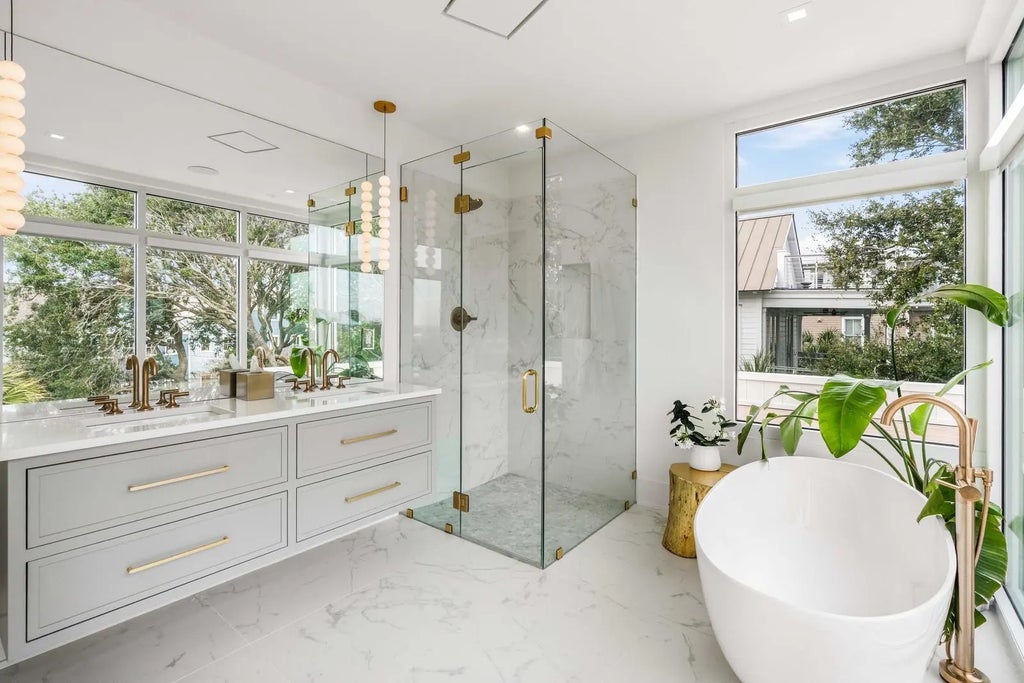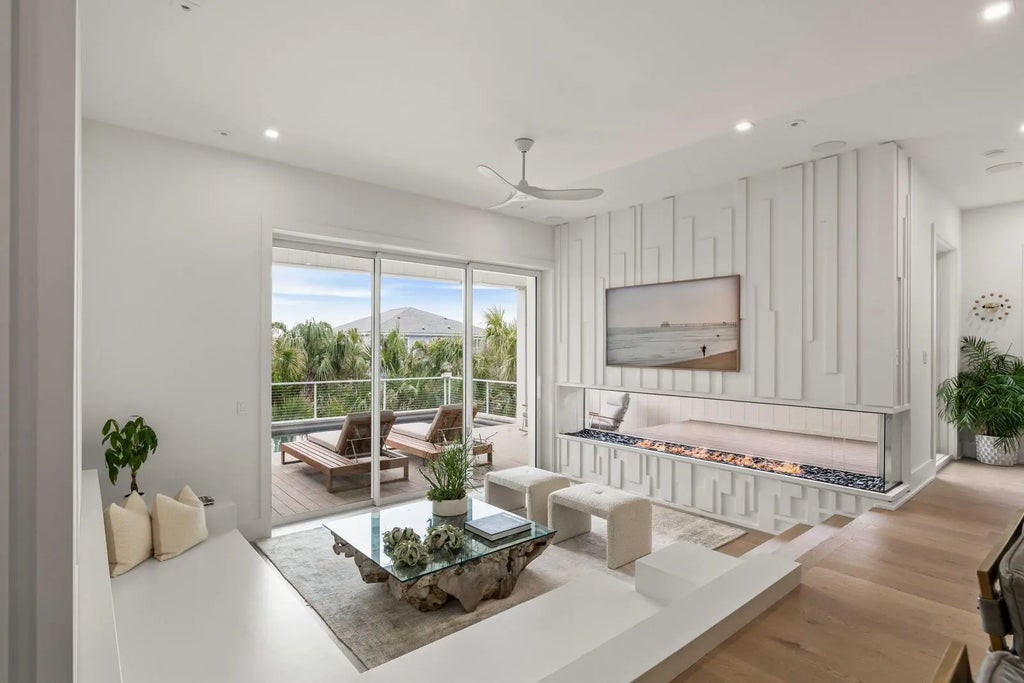 0.19 Perched at one of the highest points on Isle of Palms, 304 Carolina Boulevard is modern coastal living at its finest. Designed by The Middleton Group, the home makes a statement the moment you arrive, soaring two stories with floor-to-ceiling storefront glass, glass railings, subtle under-stair lighting, and integrated planter features that create a sleek, sculptural facade. A rare circle drive welcomes guests, framed by fifty privacy palms and mature oaks, all highlighted with ReMark Studio landscaping and uplighting that turns the property into a serene coastal vignette.Inside, you're greeted with a stunning gallery-style entry, warm wood floors, custom millwork, and polished finishes that guide you straight into the sunken living room. Here, an 80-inch dual-sided linear fireplace, a custom L-shaped sofa, and a disappearing wall of sliding glass create the ultimate indoor-outdoor flow. Step outside to the resort-style heated/chilled pool, fully equipped outdoor kitchen, and multiple lounging areas designed for year-round enjoyment. A whole-home integrated audio system keeps music flowing effortlessly throughout every interior room, terrace, and even the rooftop. The gourmet kitchen centers around a waterfall-edge island and is outfitted with high-end appliances, bespoke cabinetry, and a hidden pantry. A secondary scullery with a second dishwasher and curated bar keeps the main kitchen pristine. Custom powder-coated steel doors (crafted by Palm City) open to the wraparound terraces, including dual dining room doors that extend your entertaining space outside. Two spacious guest suites, each with en-suite baths and finished closets, complete this level. At the center of the home, a dramatic interior glass staircase rises through all levels, with millwork that continues seamlessly through the halls, bedrooms, and around the fireplace. An elevator finished to match the millwork runs from the garage all the way to the rooftop, mixing architectural impact with everyday convenience. On the primary level, both bedrooms offer peaceful retreats. One opens to a wraparound porch with sweeping ocean views; the other offers a more private sanctuary. Spa-inspired baths feature wall-mounted fixtures, an oversized dual-head shower, dual custom closets, a soaking tub, and thoughtful storage. A conveniently located laundry room serves this floor. The rooftop is nothing short of spectacular, glass railings frame panoramic views of the Atlantic Ocean, Morris Island, Sullivan's Island Lighthouse, the Ravenel Bridge, and the Intracoastal. A covered lounge, full bar, half bath, and outdoor kitchen create the perfect setting for sunset cocktails, gatherings, or quiet moments above it all. Downstairs, the ground level reveals some of the home's most impressive surprises: a climate-controlled five-car garage with abundant storage, EV charging, and full dehumidification, ideal for car enthusiasts and collectors. A custom powder-coated steel door continues the home's design language, while a dedicated theater room offers an intimate cinematic escape. With 2,500 sq. ft. of outdoor living across terraces, porches, and the rooftop, the home is finished with selections from Kelly Wearstler, Sean Lavin, Italian luxury brands, Toto, Brizo, and more, creating a refined modern-coastal aesthetic rooted in craftsmanship. Located outside the flood zone, and just blocks from the beach path and adjacent to Breach Inlet, the property offers peace of mind with an elevated coastal lifestyle. All of Charleston's dining, shopping, and culture are just minutes away. Now complete and move-in ready, 304 Carolina Boulevard is a true coastal sanctuary with every detail curated, every view intentional, and every space designed to elevate the way you live.