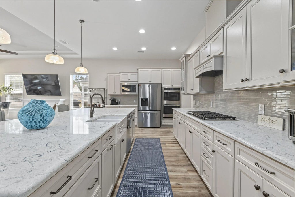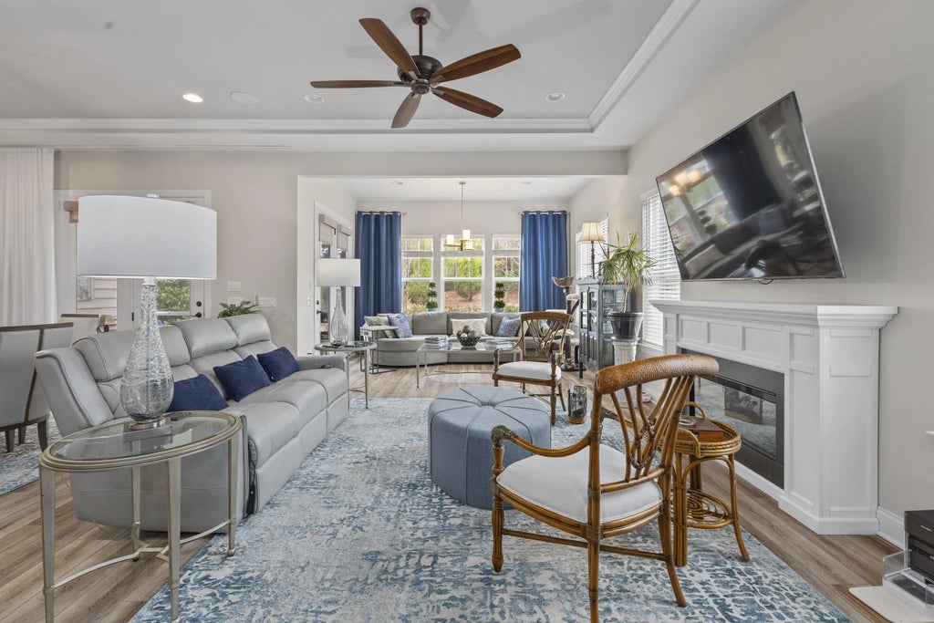 0.17 Welcome to Four Seasons K. Hovnanian Mont Blanc Loft model at Tidewater Chase with over $62,000 in after-market enhancements. Why wait for new construction when you can move right in and enjoy all the special features in this home? EXTERIOR FEATURESFull front porch with durable epoxy coating, upgraded stone exterior and beautifully landscaped curb appeal. HOA takes care of your lawn!INTERIOR FEATURESOpen concept living with soaring 10-foot ceilings and 8-foot doors. Beautiful LVP flooring throughout the foyer, hallways, great room, kitchen, sunroom, dining room, and primary bedroom. Tray ceilings in the great room, dining room, and primary suite for a look of sophistication.GOURMET KITCHEN AREAChefs' kitchen with stainless GE Profile appliances to include a 5-burner gas cook top, electric convection double wall ovens, microwave, dishwasher, and French door refrigerator with the freezer on the bottom. A tremendous quartz center island and countertops for ample room and functionality. Upgraded custom cabinetry with pull-out drawers, tiled backsplash, bronze hardware, pendant lighting, Moen faucet, and an under-mount farmhouse sink complete this stylish kitchen. LAUNDRY AND GARAGE Right by the kitchen there are double pantries that lead to a spacious laundry/mud room with built-in cabinets, nice countertops, a laundry sink, and space for a second refrigerator. From the laundry enter the oversized 2.5-car garage with windowed doors, room for a golf cart, workshop, or storage for all your beach toys, bicycles, and kayaks. ENTERTAINMENT & RELAXATION The French doors lead from the dining room to the screened porch to enjoy the beautiful Charleston weather and a sunroom to cozy in with an enjoyable book. The backyard is private with beautiful landscaping and a wooded view. You will love the Lutron automatic shades and patio shades for comfort and convenience. PRIMARY SUITE The primary suite is oversized and sunny with a trey ceiling and room for your king-sized bed. Luxury bath includes a walk-in tiled shower with a frameless door, granite countertops on dual vanities with framed mirrors, a large custom walk-in closet, and a separate water closet. ADDITIONAL FEATURES In addition, there is a den/office with glass doors for flexible use or a fourth bedroom. There is a half bath nearby. If you need a second private space, there is a built-in office nook right near the primary bedroom. The downstairs guest room has an ensuite bath for visitors' comfort. Upstairs is a loft with a bonus room, full bedroom, and full bathroom. Great for a mother-in-law suite or a private space for guests. SPECIAL PREMIUM UPGRADES Whole-house Generac generator for uninterrupted power. The owner added an inviting electric fireplace for cozy days or nights any time of the year. There is so much to enjoy at Four Seasons from Kayaking, paddleboard, pickleball, fishing, a round of pool, swimming, playing cards or visiting the gym. Do not worry about yard work, your home includes lawn care including mowing, fertilizing, pine straw, and lots more! For a complete list of upgrades, refer to the documents section in the MLS. This home is truly a showcase of thoughtful enhancements and luxury living ready for you to enjoy from day one.