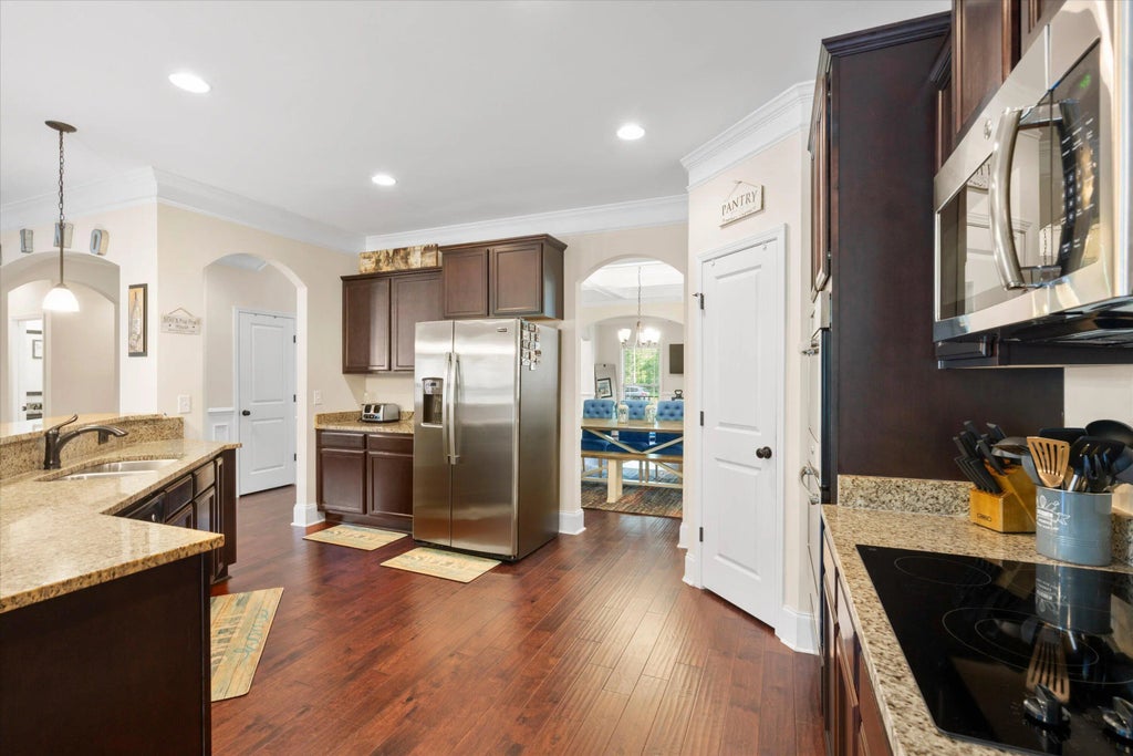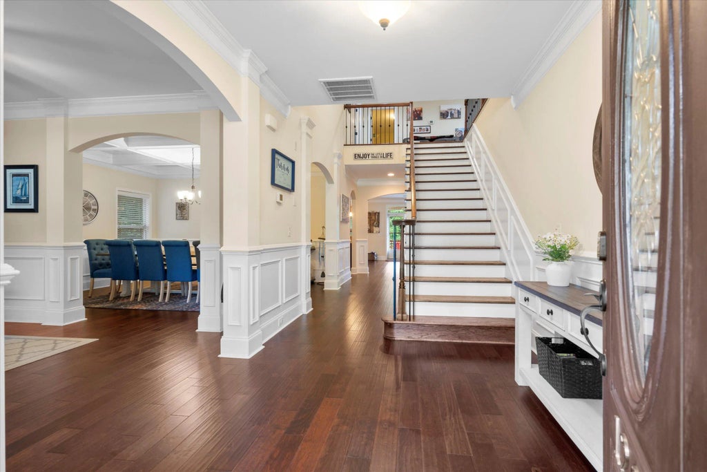 1.04 Spectacular Custom Brick Home on One Acre in Gated Wassamassaw Plantation--Zoned for Cane Bay Schools Welcome to your dream home in one of the Lowcountry's most sought-after communities. This custom-built solid brick estate sits on a spacious one-acre lot and offers an exceptional blend of elegance, comfort, and resort-style amenities. Main Level Highlights Gorgeous Bamboo hardwood flooring, custom molding, and 9-foot smooth ceilings throughout Expansive gourmet eat-in kitchen with granite countertops, stainless steel appliances, recessed and pendant lighting, extended-height bar seating, and casual dining area Open-concept family room with gas log fireplace, perfect for entertainingElegant formal living and dining rooms, with coffered ceiling and wainscoting in the dining area Versatile office or optional 5th bedroom, plus a full bath Second Floor Features Luxurious primary suite with sitting area, tray ceiling, dual walk-in closets, extended-height granite vanities, ceramic tile flooring, private water closet, garden tub, and separate tiled shower Spacious loft area, for many uses Large laundry room with built-in cabinets and sink Private guest suite with ensuite bath, perfect for in-laws or visitors Two additional bedrooms with walk-in closets, connected by a Jack-and-Jill batheach with its own sink and toilet, sharing only the shower Outdoor Oasis Step outside to your personal retreat featuring: A heated and cooled in-ground saltwater pool with tanning ledge, LED lighting, elegant fountains, and a remote-controlled hidden electric cover for safety and convenience A massive 20' x 40' Trex deck with integrated lighting, ideal for hosting gatherings A sunken 7-person hot tub, seamlessly built into the deck for a sleek, relaxing experience A fully fenced yard with a newly upgraded irrigation system to keep your landscaping lush A private 1-car garage/shed for extra storage or workshop space All attic ductwork has been professionally redone, ensuring optimal energy efficiency Community Perks Wassamassaw Plantation offers gated privacy and resort-style amenities including a swimming pool, picnic pavilions with grills, and three stocked lakes. No flood insurance required, and you're just minutes from major interstates, airports, Boeing, Volvo, beaches, and vibrant downtown Charleston.
