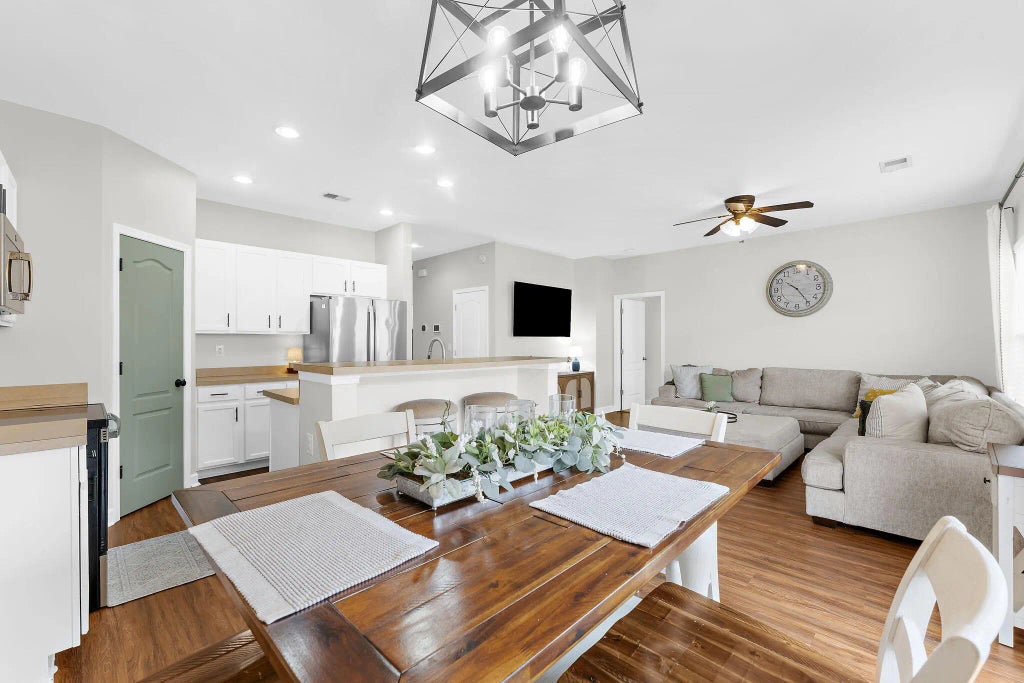 Ceiling - Smooth, Kitchen Island, Ceiling Fan(s), Eat-in Kitchen, Great, Living/Dining Combo, Pantry