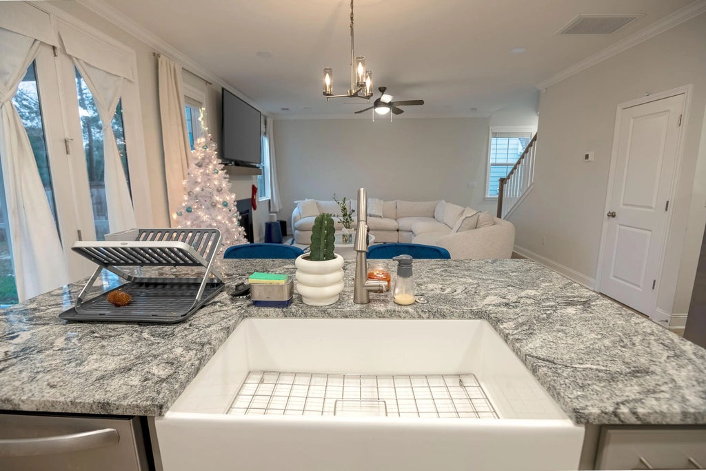 0.16 Experience luxury living in this beautiful 3-bedroom, 2.5-bath home. Nestled in the charming Abbey Walk community, Entering the stunning 12 feet doorway of this Livingston features laminated hardwood flooring leading through the foyer area and into the main living area with stunning trim details. The open floor plan leads to the kitchen which is a chef's delight. It has Whirlpool appliances, a gas range, a farmhouse sink, and an elegant quartz countertop. The laundry room is adjacent to the garage and there is a screened porch leading outside to a spacious fenced backyard. Upstairs, you will findthe master bedroom with a tray ceiling as the main focal point. The Bathrooms feature raised height vanities. Plus, enjoy the benefits of a solar panel system included with the home. It also includes cement plank sidings. This home also offers fantastic amenities, including a dog park, picnic area, and a playground. Enjoy the proximity to shopping, dining, and a local country club community. It is not far from downtown Summerville, Downtown Charleston, other waterways and beautiful southern beaches. Abbey Way is close to Volvo, Google, RedWood battery company, and the Walmart distribution center just to name a few.