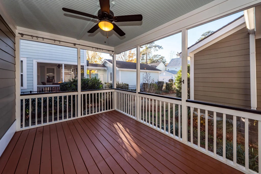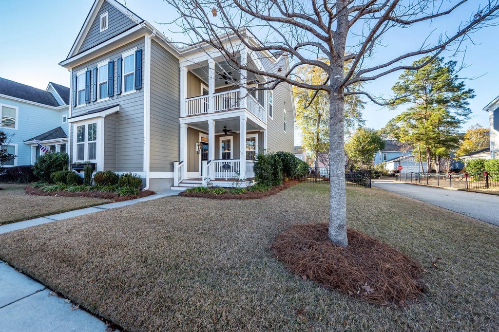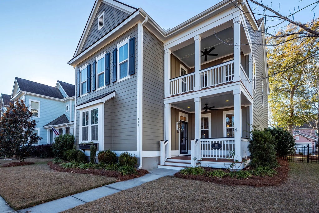 0.17 Ideally situated on a coveted corner lot in one of Summerville's most charming and walkable neighborhoods, this elegant Southern-style home offers convenient access to historic downtown Summerville, Doty Park, acclaimed dining, and boutique shopping. Classic double porches and lush landscaping create timeless curb appeal.Inside, the thoughtfully designed two-story home features two en-suite bedrooms with the primary suite conveniently located on the main level. Hickory wood floors flow throughout the entire first floor, leading into a warm and inviting great room with a gas fireplace-perfect for entertaining or relaxing at home. The kitchen is a true showpiece with rich dark cabinetry, granite countertops, tile backsplash, stainless steel appliances including a gas range, and agenerous island for casual dining. A separate dining room with added chair rail and picture frame trim seamlessly connects to the kitchen. Upstairs living is equally impressive with an expansive loft opening to a covered porch-ideal as a media room, game room, second living room or play space plus a charming nook that can serve as a cozy reading area or home office. The second en-suite bedroom features a private bath and walk-in closet. Two additional spacious bedrooms and a third full bathroom complete the upper level. Outdoor living is exceptional featuring a screened porch, paver patio, and covered open porch-perfect for grilling and gathering. The large fenced yard includes four gates, irrigation with extra zones for efficient water use, two rain barrels with spigots for eco-conscious living, gutters, and beautiful landscaping. A gas-powered Generac generator conveys, providing peace of mind and added value. Additional highlights include plumbing for a utiity sink in the laundry room and a detached 2-car garage with a painted floor and extra storage space below the rafters. This home perfectly blends charm, modern upgrades, and an unbeatable Summerville lifestyle.