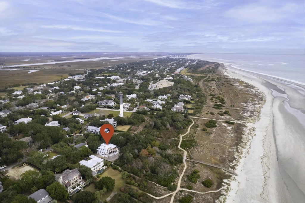 0.32 Introducing 189 Station 18 Street, designed by prominent local architect Joel Adrian, and built by Rhodes Residential Builders, this quintessential ocean front home, is situated on a large lot just south of the Lighthouse, at the end of Station 18 off Atlantic Avenue. Features include Custom cabinets, high-end appliances, metal roof, natural stone countertops, designer tile, wood plank floors, designer lighting, and a massive outdoor entertaining area. The floorplan features a beautiful open great room made for entertaining that flows into the large custom professional kitchen. Just off the kitchen are two separate pantries.From the foyer, there are two downstairs guest suites with access to a rear porch and a guest powder room.From the great room, open the sliding glass doors to bring the outside in. The home features massive decking/porches which provides substantial outdoor living space. On the main level deck, there is an outdoor powder room just off the elevated pool and sun deck. The area provides a wonderful place for outdoor seating with an outdoor kitchen and outside wet bar are perfect for gatherings. An impressive primary suite is located on the upper level of the house, with custom walk-in closet and an inviting bathroom, with shower and soaking tub and dual vanities. The views of the Morris Island light house and ships entering the harbor are easily spotted through the large picture windows in the bedroom and bathroom. The secondary primary suite also faces the ocean, with a large walk-in closet and sitting area, with a full ensuite bathroom. Both primary suites allow access to the upper level porch which allow ocean breezes right in. There will also be stairs to the top floor viewing deck. One large guest bedroom with ensuite bath, a upstairs sitting/den area, and a laundry room are also located on the same floor. Elevated construction allows for plentiful parking underneath as well as storage for all of your outdoor gear and equipment. Andersen windows and doors invite the beautiful landscaped yard inside this stunning residence. This house was made for entertaining or just enjoying family/friends in a quiet setting.