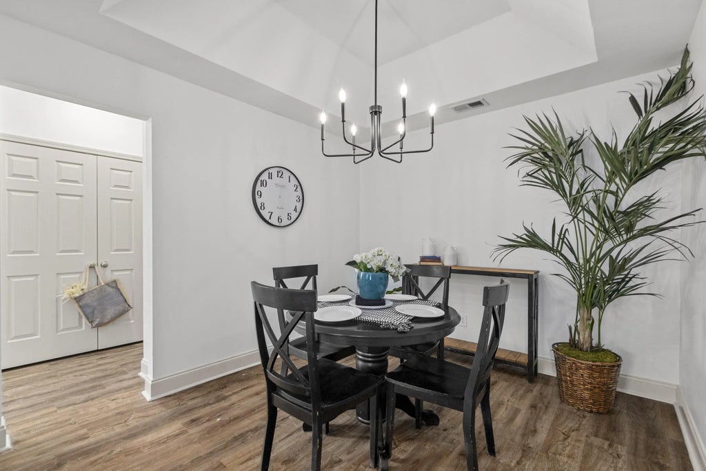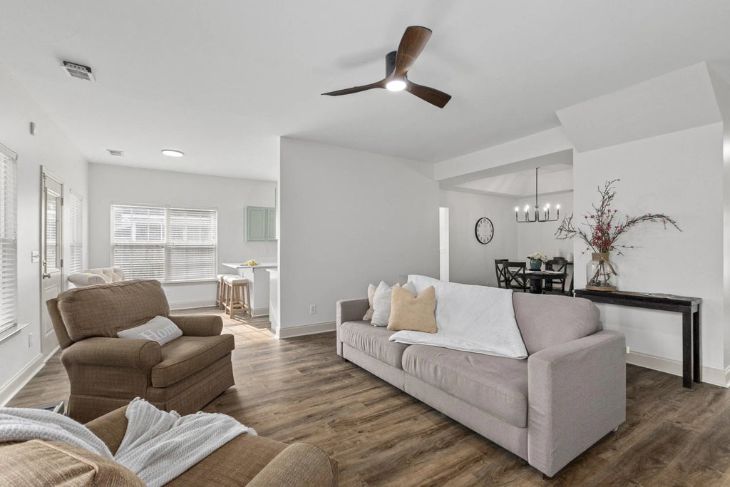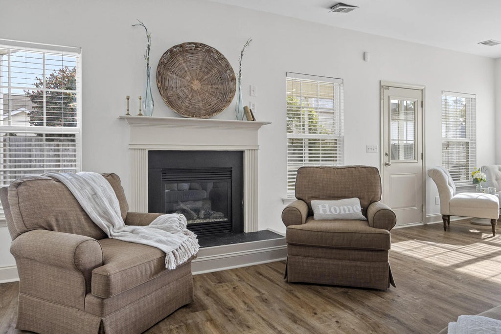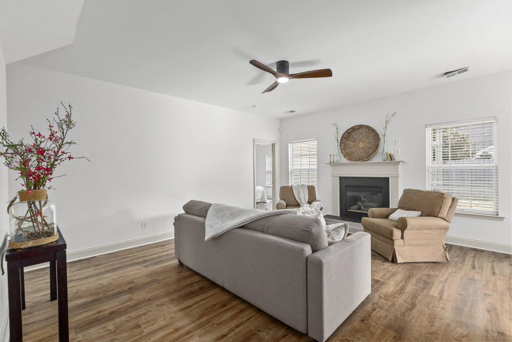 0.16 Ideally located in Summerville with easy access to I-26 and NEXTON, this beautifully updated home offers one of the most desirable floorplans in the neighborhood. The primary suite is on the main level, thoughtfully separated from two additional downstairs bedrooms, while a private fourth bedroom suite and large rec room upstairs provide flexible living space. Recent upgrades include new LVP flooring, fresh interior paint, and a stunning Pottery Barn-style rattan vanity in the primary bath. Enjoy a spacious living room with fireplace, a true dining room with custom angled tray ceilings and new quartz counters, and a well-appointed kitchen with stainless steel appliances and counter-height breakfast bar. Relax on the screened porch overlooking the fenced backyard. Owner is the SC Realtor.Primary bedroom features custom angled tray ceilings Fourth bedroom upstairs functions as a private suite Rec room upstairs ideal for media, playroom, or office Screened back porch + fenced backyard Stainless steel kitchen appliances Excellent neighborhood floorplan and layout The Owner is SC Realtor