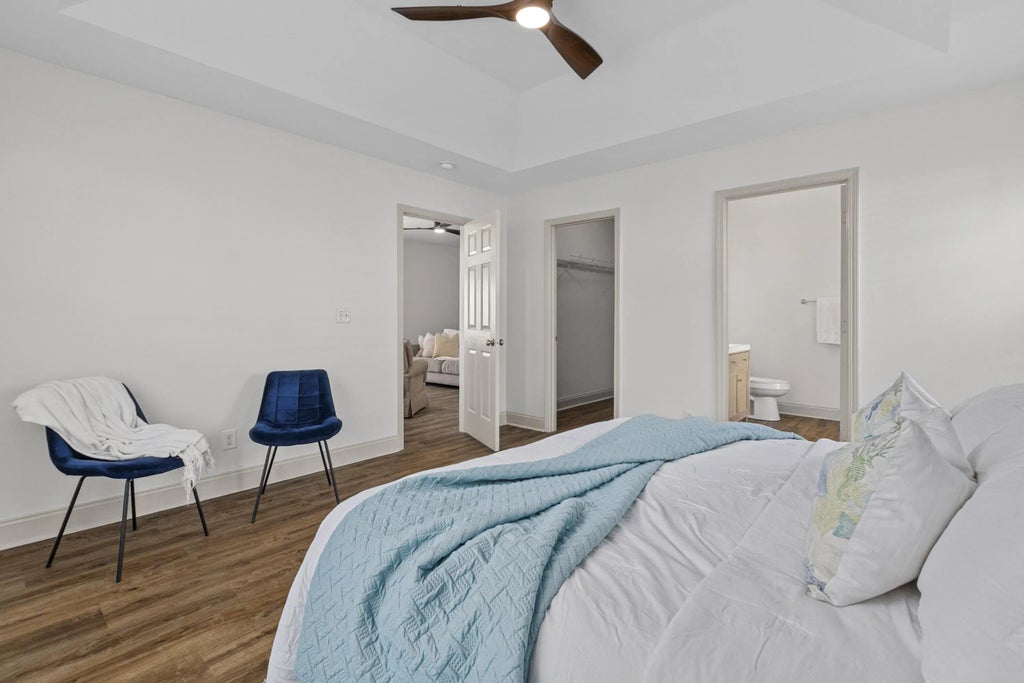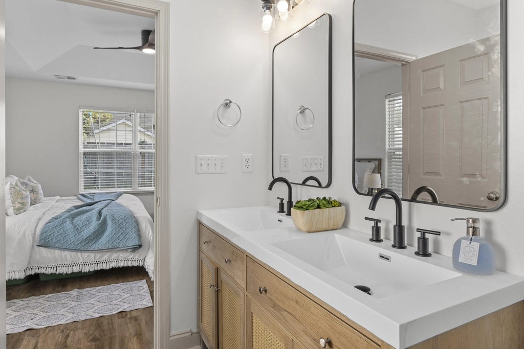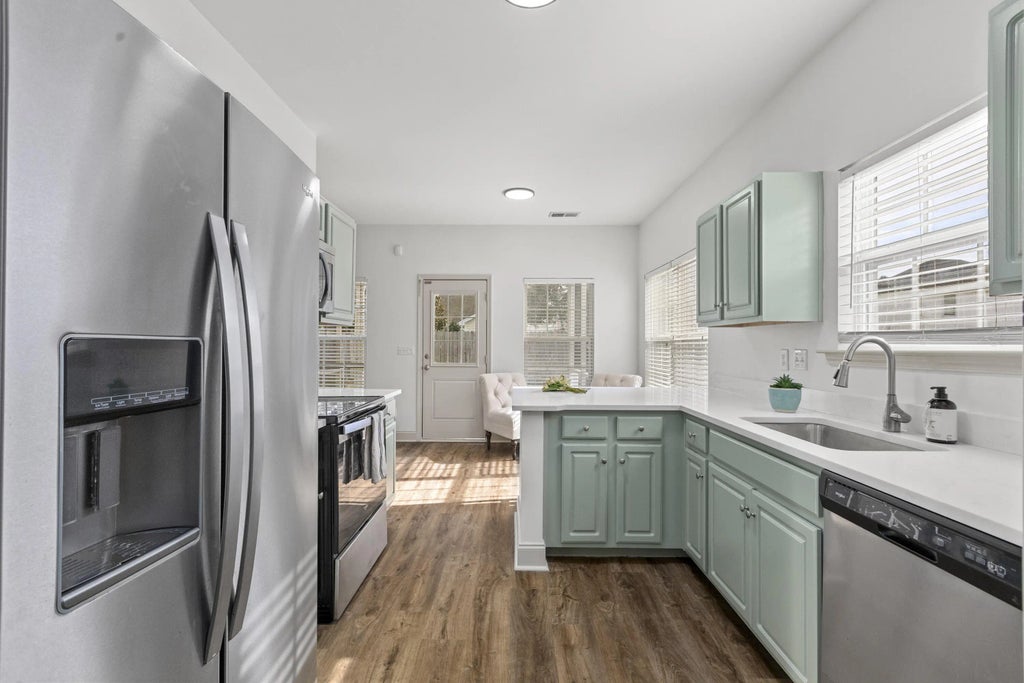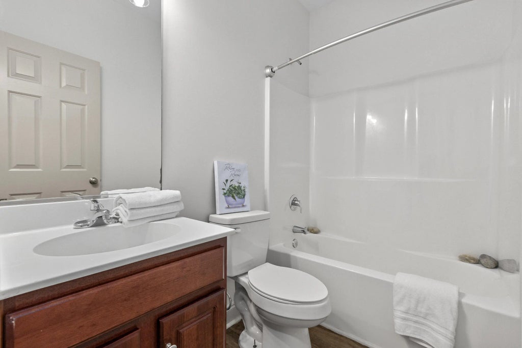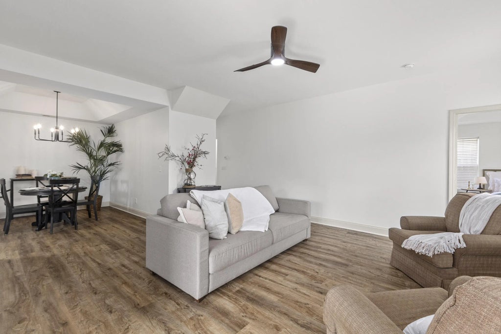 0.16 Ideally located in Summerville with easy access to I-26 and NEXTON, this beautifully updated home offers one of the most desirable floorplans in the neighborhood. The primary suite is on the main level, thoughtfully separated from two additional downstairs bedrooms, while a private fourth bedroom suite and large rec room upstairs provide flexible living space. Recent upgrades include new LVP flooring, fresh interior paint, and a stunning Pottery Barn-style rattan vanity in the primary bath. Enjoy a spacious living room with fireplace, a true dining room with custom angled tray ceilings and new quartz counters, and a well-appointed kitchen with stainless steel appliances and counter-height breakfast bar. Relax on the screened porch overlooking the fenced backyard. Owner is the SC Realtor.Primary bedroom features custom angled tray ceilings Fourth bedroom upstairs functions as a private suite Rec room upstairs ideal for media, playroom, or office Screened back porch + fenced backyard Stainless steel kitchen appliances Excellent neighborhood floorplan and layout The Owner is SC Realtor