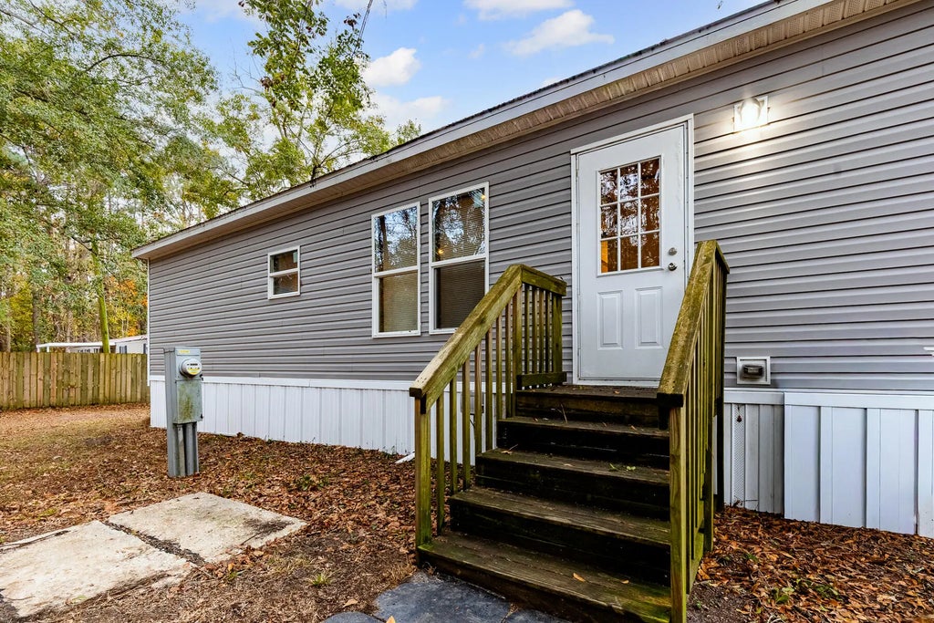 0.27 Upgraded 2018 mobile home offering 1,568 sq ft on a spacious 0.27-acre lot. This open floor plan features an oversized kitchen island & an oversized walk-in pantry, providing exceptional storage & prep space. Two bedrooms & a full bath are conveniently located off the kitchen, while a generously sized laundry room offers access to both the kitchen & the owner's bath. The living room includes a built-in feature, adding both style & functionality. The private owner's suite offers a large walk-in closet, double vanity, a relaxing soaking tub, & a separate freestanding shower. Located with easy access to the boat landing & Lake Moultrie, this home combines space, comfort, and convenience--perfect for full-time living or a weekend retreat. Buyer to verify any/all info-