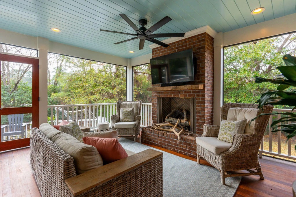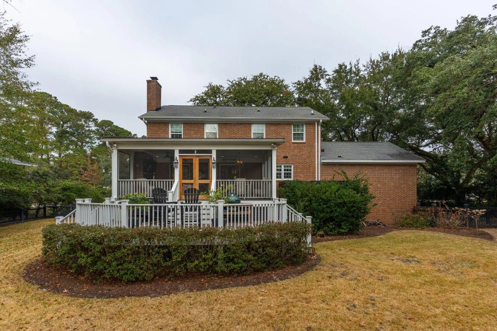 0.40 Two-story brick home in Country Club II, set on nearly half an acre. This three-bedroom, three-and-a-half-bath home offers a beautifully executed first floor with traditional room separation and timeless finishes throughout. Formal living room and separate den, the den featuring a wood-burning fireplace that can easily be converted back to gas.The dining room sits just off the kitchen, creating an ideal layout for entertaining. The eat-in kitchen is equipped with high-end Thermador appliances, a modern range hood, and a large island for serving or casual meals. Hardwood floors extend throughout the home.A screened porch with a gas fireplace overlooks the backyard, with an open patio below and plenty of space for outdoor living and play.Just off the kitchen is a mudroom and laundry area with access to the one-car garage and stairs leading to the finished room over garage (FROG). The FROG offers flexible space and works well as a second living area, home office, or fourth bedroom. Upstairs, the primary suite includes two full bathroomsone with a clawfoot tub and the other with a walk-in showeralong with a walk-in closet and convenient attic access for additional storage. Two well-sized guest bedrooms share a hall bathroom with dual sinks. Country Club II is ideally located close to downtown Charleston, the Country Club of Charleston, local restaurants and shopping, and offers an easy drive to Folly Beach. A gracious home designed for comfort, functionality, and entertaining.
