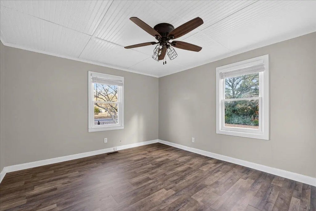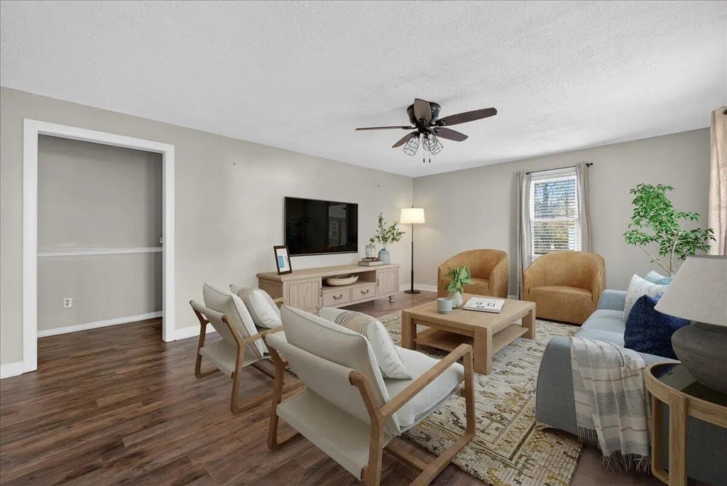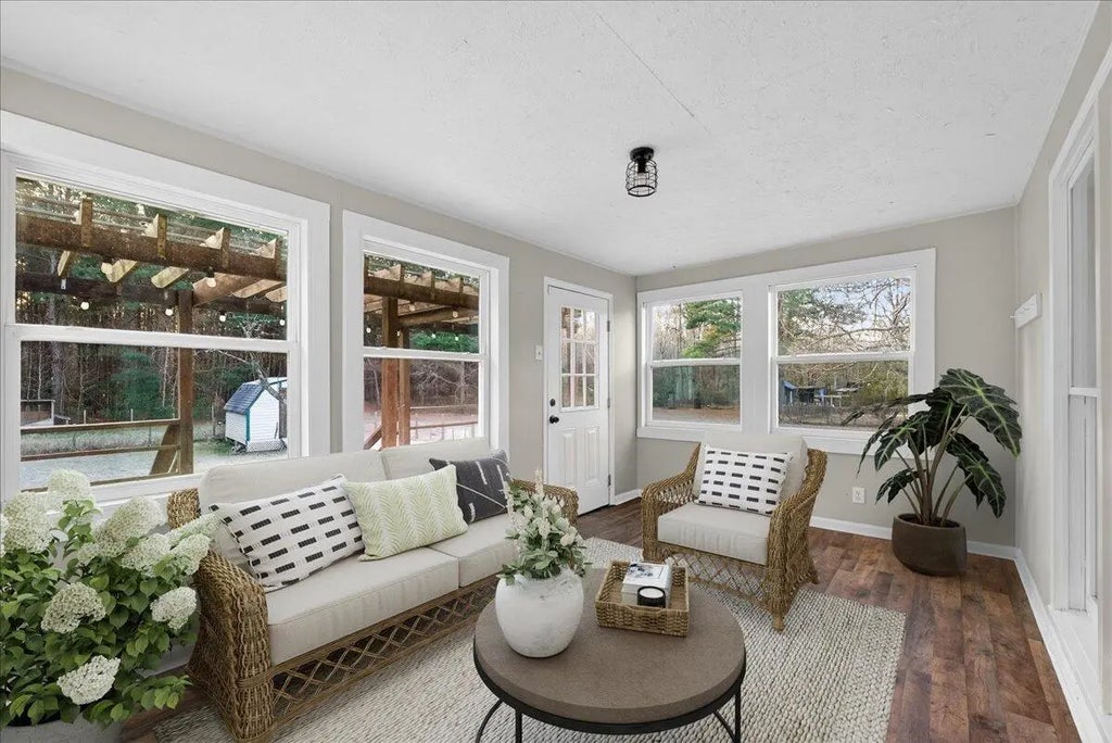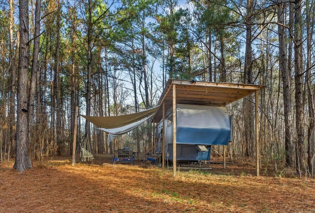 4.01 Enjoy peaceful country living with room to roam on 4 acres, featuring a charming ranch-style home and a separate private guest retreat. Relax on the welcoming front porch or unwind on the back porch, with outdoor living spaces designed for everyday enjoyment.Inside, the home offers a spacious family room, an eat-in kitchen, and a bright sunroom filled with natural light from all sides--ideal for year-round use. The kitchen features ample cabinetry along with beautiful live-edge wood open shelving. The primary bedroom and guest bedroom share a generously sized hallway bathroom with ample counter space and a tub/shower combination.The back porch steps down into a fenced yard, perfect for pets or outdoor activities, and includes a large shed for additional storage.Just beyond the fenced yard, follow the private lane to a serene, separate retreat suitable for guest accommodations or longer-term use. This peaceful setting includes a pond, fire pit, and a fully remodeled stationary RV that comfortably sleeps four, offering flexibility for extended stays or private guest quarters.