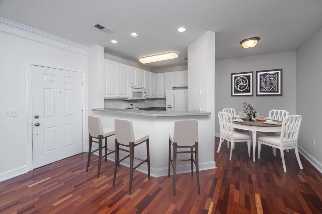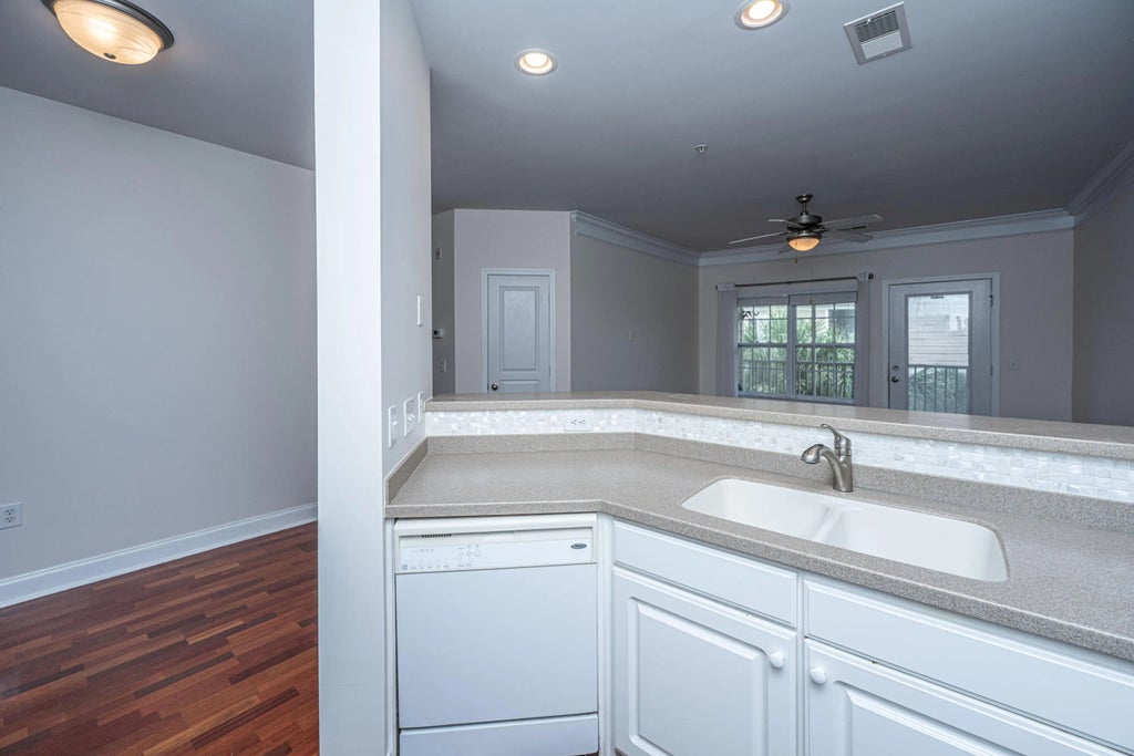 982 Lock and leave, low-maintenance lifestyle or primary residence -this home has so much to offer. Amenities including multiple pools, trails, tennis/pickleball courts, club houses, gardening areas, boat storage - for an additional fee, and an elevator to this 3rd floor end unit.Step inside to discover Brazilian cherry hardwoods that flow through the main living area, adding warmth and character. The open floor plan is anchored by a white kitchen with backsplash, perfect for a small gathering or everyday living. The primary suite includes an upgraded walk-in tile shower and generous closet space. A 2nd bedroom and full bath offers comfort and privacy for guest or a home office set-up. This unit also has a balcony to enjoy.
