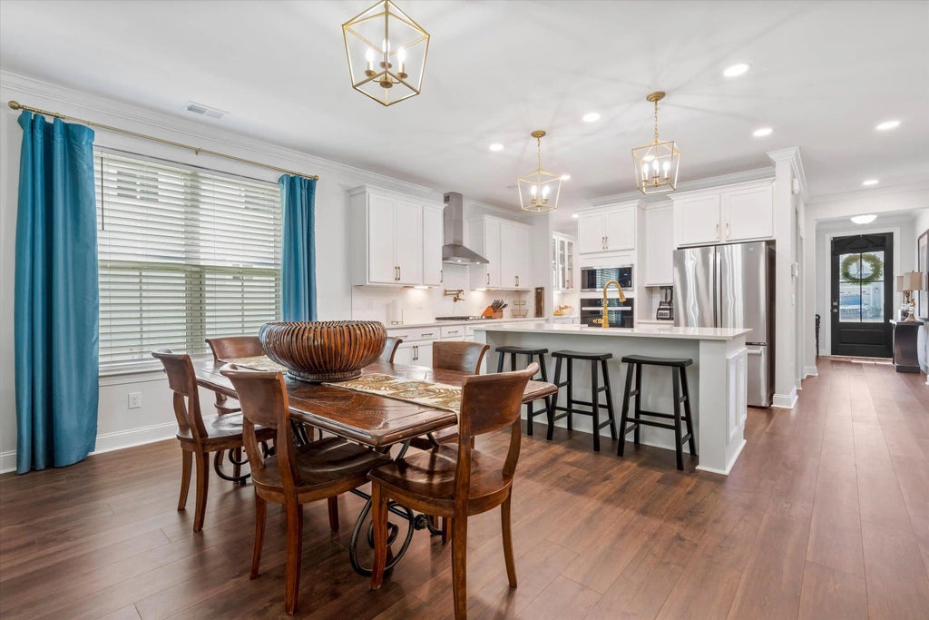 0.14 Step into refined Southern charm with this beautifully appointed 5-bedroom, 3.5-bath home in the heart of Moncks Corner's sought-after Foxbank Plantation. Offering 3,261 square feet of thoughtfully designed space, this residence blends timeless elegance with modern luxury and best of all, it's move-in ready at a time when new construction delays are making the wait longer than ever.From the moment you enter through the oversized glass-inset front door, rich barrel oak hardwoods, soaring ceilings, and detailed millwork set a sophisticated tone. The sunlit main level features a spacious family room with a custom mantle and granite-surround fireplace perfect for relaxing or entertaining.The chef's kitchen is a true centerpiece, showcasing quartz countertops, gold-accent fixtures, a striking herringbone backsplash, and a statement porcelain farmhouse sink. A butler's pantry with glass-front cabinetry and under-cabinet lighting seamlessly connects to the formal dining room for effortless hosting. The main-level primary suite offers a tranquil retreat with its spa-like en suite bath, featuring a frameless glass shower, freestanding soaking tub, and dual vanities with natural stone quartz. A bright sunroom opens to the backyard, while an upstairs balcony offers peaceful views from above. Additional highlights include a flexible loft space, a 2-car garage, and designer finishes throughout. Set within the 800-acre master-planned Foxbank Plantation, residents enjoy resort-style amenities: a 67-acre lake with kayak launch, nature trails, preserved wetlands, two pools, a fitness center, boutique shops, green spaces, and a gated dog park. A Publix is located right at the community entrance for ultimate convenience. Zoned for Foxbank Elementary and part of the Berkeley County School District, this home combines everyday comfort with elevated styleall just a short drive to downtown Charleston, Cypress Gardens, and major commuter routes. With new construction in Moncks Corner currently facing extended timelines, this pristine, ready-now home offers an unbeatable alternative.