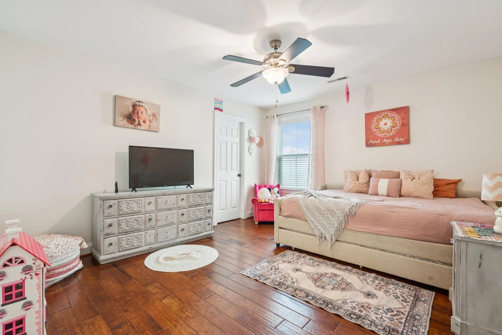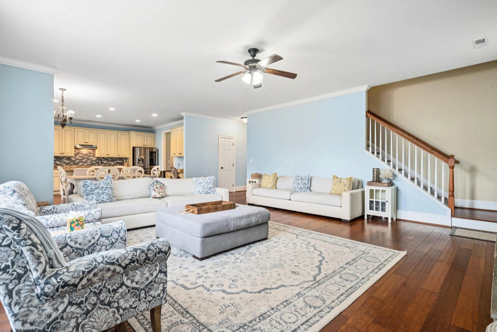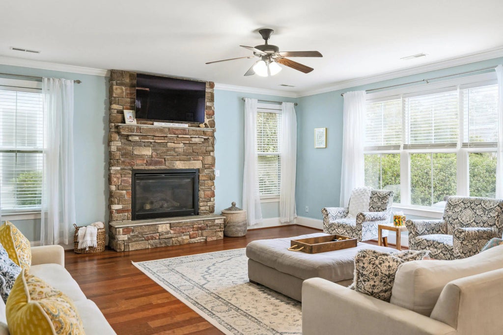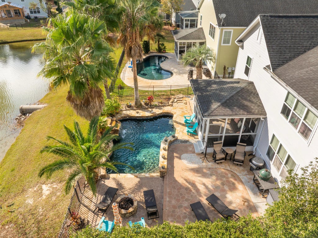 0.15 This spacious, beautifully updated home delivers five bedrooms, four-and-a-half bathrooms, and plenty of room to live, work, and play, all spread across two full stories with an attached two-car garage, double front porches, a screened porch, and a stunning pond-front setting. The real showstopper, however, is the backyard: a true entertainer's paradise featuring a resort-style pool with a tropical waterfall that makes you feel worlds away. Step inside to an inviting open floor plan centered around a gracious hallway. To the right, you'll find two versatile formal rooms. The first, enclosed by French doors, is perfect for a home office or playroom.The second features elegant coffered ceilings and would serve beautifully as a formal dining room or living space. This room connects to the kitchen through a well-appointed butler's pantry complete with glass-front cabinetry and additional storage. The rear of the home is where daily life truly happens. The spacious kitchen is a chef's delight, offering a large seating island, granite countertops, stylish cabinetry, and stainless steel appliances. A casual dining area sits just beside it (ideal for everyday meals) and flows seamlessly into the comfortable living room anchored by a stone-detailed fireplace and bathed in natural light. Upstairs, the thoughtful layout provides four generous secondary bedrooms, one of which features a private en-suite bathroom, while two others share a Jack-and-Jill-style bathroom. The primary suite is enormous and feels like a true retreat, showcasing tray ceilings, abundant natural light, and direct access to the upper front porch. The en-suite bathroom is equally impressive, offering double vanities, a large soaking tub, and a walk-in shower. Back downstairs, the screened-in porch overlooks the crown jewel of this property. Backing up to a peaceful pond, the fenced yard features a terraced stone patio, lush tropical landscaping, stone retaining walls, a fire pit, and the sparkling pool with its signature waterfall. It's the perfect place to entertain family and friends or simply unwind while taking in the serene surroundings. Don't miss your chance to own this well-kept, spacious home in a fantastic location with one of the best entertaining backyards you'll find. Schedule your showing today!