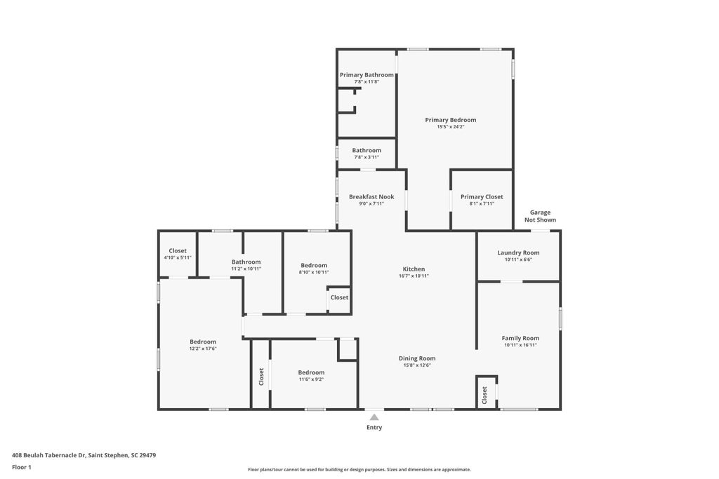 1.00 Situated on a gated 1-acre lot in Saint Stephen, this charming home offers privacy, space, and flexibility--without the restrictions of an HOA. This thoughtfully designed home features 4 bedrooms, 3 bathrooms, and nearly 2,000 sq/ft of comfortable living space, including a versatile bonus room that can serve as a bedroom, office, playroom, or guest suite. Charming Brick Home on 1 Acre -- No HOA, Gated, and Packed with Potential! Discover peaceful country living with modern convenience at 408 Beulah Tabernacle Drive. Just 20 minutes from Moncks Corner and 14 minutes from Bonneau Beach, you'll have easy access to shopping, dining, and recreation, all while enjoying your own private retreat. Step inside to an inviting open-concept layout with luxury vinyl plank flooring through theliving areasdurable, stylish, and perfect for everyday living. The living area flows seamlessly into the kitchen, creating a warm and welcoming setting for relaxation or entertaining. Charming Brick Home on 1 Acre No HOA, Gated, and Packed with Potential! Discover peaceful country living with modern convenience at 408 Beulah Tabernacle Drive. The modern kitchen features abundant cabinet storage, quartz countertops, updated stainless steel appliances, and a large island with eat-in seatingideal for casual meals, meal prep, or your morning coffee. All bedrooms are generously sized, providing excellent flexibility for families, guests, or multi-generational living. With three bathrooms, busy mornings run smoothly with no waiting. A dedicated laundry area and multiple smart storage solutions throughout the home enhance daily convenience. Outside, the expansive 1-acre gated lot offers endless possibilities. For investors, the property already includes its own septic tank and well, making it possible to install a mobile home. There is also plenty of room for gardening, outdoor entertaining, adding a workshop, parking recreational vehicles, or simply enjoying the peace and privacy of your own open space. Whether you're seeking a serene primary residence or a home with room for extended family, 408 Beulah Tabernacle Drive delivers space, comfort, and opportunity in a quiet, welcoming setting. Don't miss your chanceschedule your showing today! Owner is a licensed South Carolina real estate agent.
