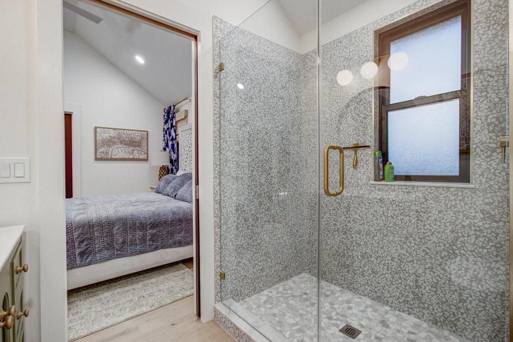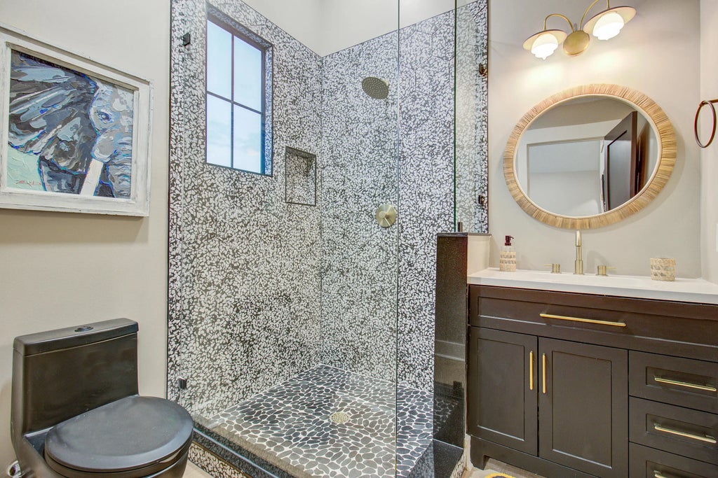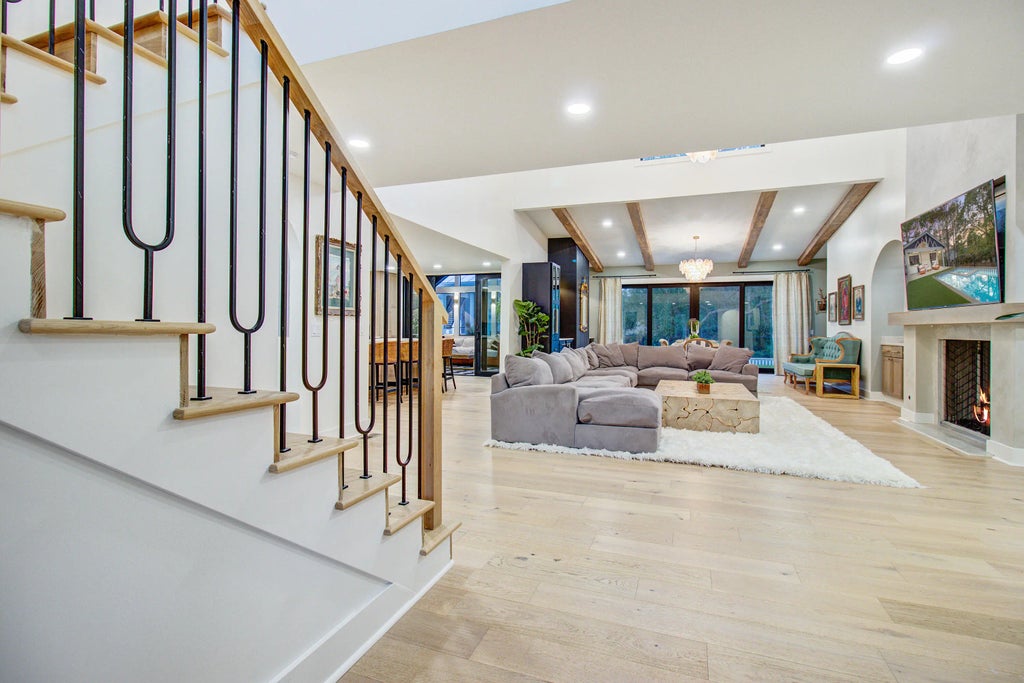 0.41 Welcome to an Entertainers Paradise 3 Blocks from the beach in a Full 2024 renovation to the studs! This expansive first floor features white Oak wood plank flooring that compliments Omega oak cabinets throughout in the large eat in kitchen, spacious enough for any chef. Also on the first floor is A Large Primary Bedroom as well as a bonus room that can be an office or additional guest room. The best part of the main floor is not having to plan a field trip to go down to the pool, Exit the 16' sliding door and walk right onto the raised deck to dive into a huge heated pool and spa, and then warm up with the wood fireplace beside it. The expansive deck and covered cabana is a Must Have extension of entertaining space, with access and views of the pool from ALL of the first floor rooms.When you aren't using the saltwater pool just press a button and the electric cover will close adding extra safety for any non swimmers. Don't worry about the pool addition taking up your Dog Run, Football throwing, or grassy putting green as the almost half acre yard is big enough for all your outdoor activities. A full Sprinkler system was installed with front and back zones to complete the yard. Walk up the stairs to the second floor and view three ensuite bedrooms with ample closet space, vaulted ceilings and lots of natural light. The kitchen features a 48" duel Fuel gas range and Honed Taj Mahal Quartzite Counters, and right off the kitchen is a screen room with checkered Marble tiles, another fireplace and Bahama shutters for privacy. The copper roof was installed in 1999 and all additions have a 2024 Metal Aluminum Roof. 2 HVAC units 2024 and an brand new Tankless Propane tank. The garage has a 200 sq ft temperature controlled room that can be used for extra storage, an office, etc