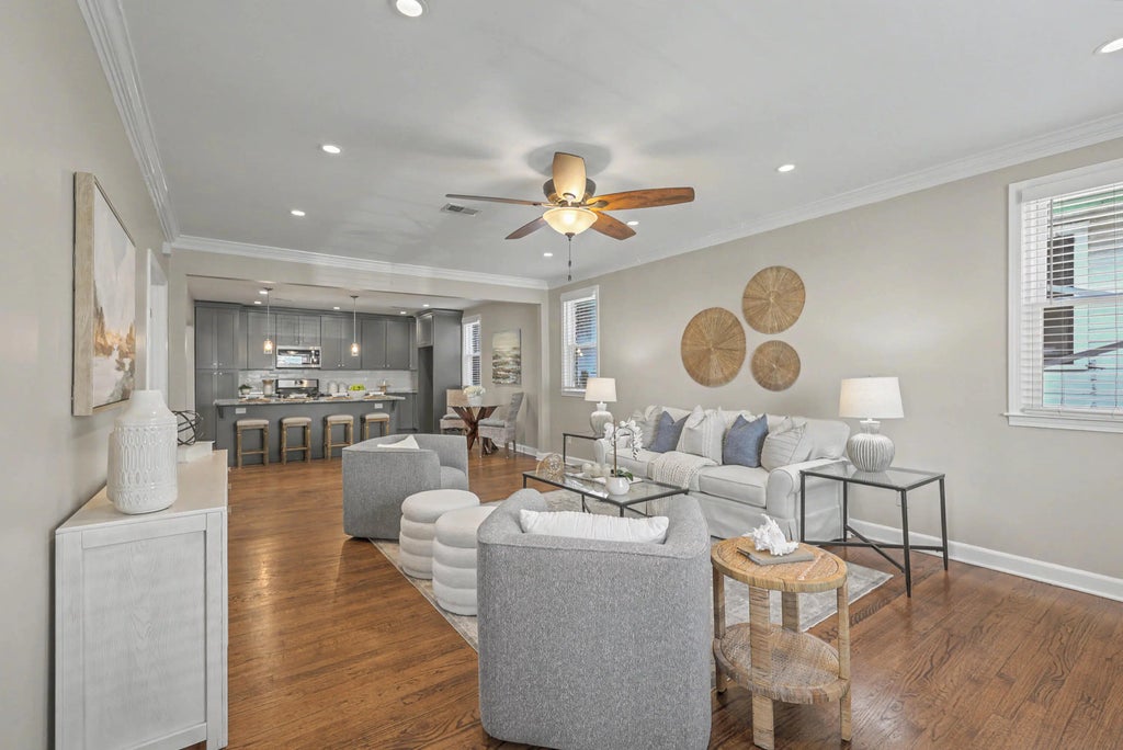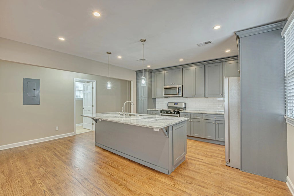 0.10 Located in one of Downtown Charleston's most sought-after areas, this beautifully renovated 4-bedroom, 3-full-bath home offers the perfect blend of charm, comfort, and convenience. The open-concept layout is ideal for entertaining, featuring hardwood floors throughout the main level, including the primary bedroom and an additional secondary bedroom with a full bath downstairs.The spacious kitchen boasts granite countertops, a large center island, stainless steel appliances, 42-inch cabinetry, and under-cabinet lighting perfect for both everyday living and hosting guests. A dedicated laundry room accented with a stylish barn door adds both function and character. Upstairs, you'll find two generously sized bedrooms and a full bath, providing ample space for family or guests....Upstairs, you'll find two generously sized bedrooms and a full bath, providing ample space for family or guests. New roof October 2025 and Windows replaced 2024. Enjoy the unbeatable location within walking distance to Hampton Park and The Citadel, and just minutes from the College of Charleston, King Street shopping, and Downtown Charleston's vibrant entertainment, dining, and nightlife. Convenient access to I-26, parks, recreation, shopping, and Charleston's beautiful beaches completes this exceptional offering.