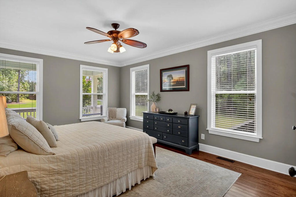1.02 **Your Dream Home Awaits!** Step into luxury and comfort in this stunning custom-built 5-bedroom, 3.5-bath home, boasting nearly 3,100 square feet of exquisite living space. From the moment you approach the grand front porch, you'll feel the warmth of this beautiful residence--an ideal spot for cozy chats with loved ones. As you open the double farmhouse-style doors, you are greeted by a spacious foyer highlighted by soaring ceilings and elegant five-layer crown molding. The versatile formal living and dining areas offer a serene escape or the perfect setting for your home office.The heart of the home is a beautifully designed kitchen featuring custom cabinets, a stylish backsplash, and a unique island with a gorgeous wood countertop. The open dining area is surrounded bylight-filled windows, creating a bright and inviting atmosphere. Double ovens and a microwave nestled in the island make entertaining a breeze. Relax and enjoy family time in the open-concept family room, complete with a cozy gas fireplace and built-ins designed for your personal touch. Freshly painted in welcoming earth tones, this space exudes positive energy. The luxurious first-floor master suite showcases a meticulously organized walk-in closet and a master bath that boasts a walk-in shower and a garden tub adorned with custom finishes. Upstairs, discover four spacious bedrooms with connecting Jack-and-Jill bathrooms perfect for privacy and convenience. Step outside to your backyard oasis overlooking a serene community pond, complete with a charming fountain. Delight in evenings around your fire pit, roasting marshmallows as the crisp fall air sets in. This home also features a convenient walk-up attic for extra storage, a first-floor laundry room, and a butler pantry. With a recent inspection confirming upgrades and minor repairs, this beautiful home is ready to welcome a new family. Situated on a high 1.02-acre lot in flood zone X, this property includes a detached 3-car garage, great for toys or a workshop. Experience peace of mind in the gated community of Wassamassaw Plantation, equipped with the latest technology for secure access. Enjoy fantastic amenities, including a large community pool, picnic area, and a pavilion with a fireplace. The amenity center is a short walk from your backyard to enjoy all that Wassamassaw has to offer. Zoned for the highly-rated Cane Bay School system and just minutes from esteemed private schools like Pinewood, Northwoods, and St. Johns. Don't miss out on the chance to make this exquisite home yours! Contact us today to schedule a tour and start your new lifestyle in Wassamassaw Plantation!