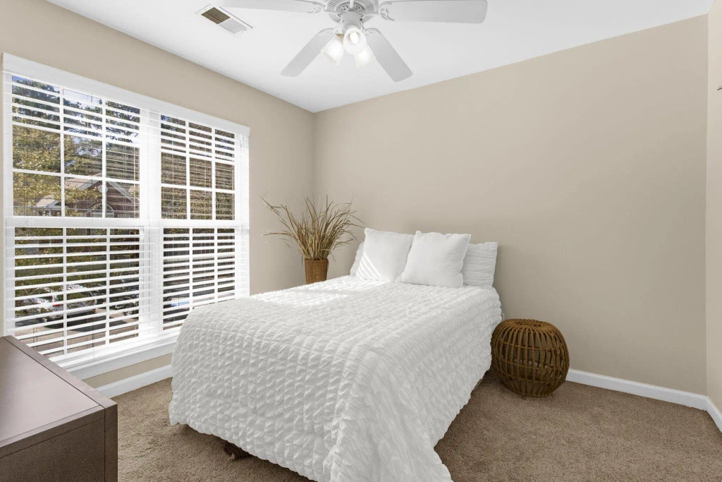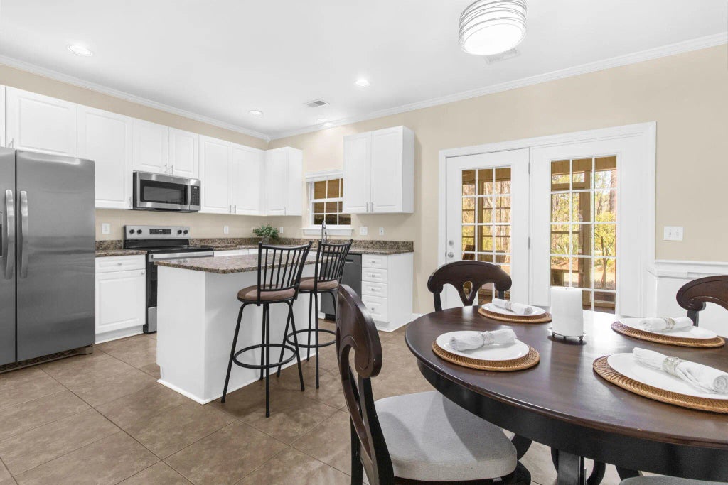1660 Located in the highly-coveted Dunes West Neighborhood, 1683 Camfield Lane is a beautifully-maintained 3 bedroom, 2.5 bath townhome. The open downstairs living area flows seamlessly into the kitchen, which boasts an ample walk-in pantry. The backyard features a large screened-in porch and an outdoor patio which overlook the peaceful woods beyond. Upstairs, each of the three bedrooms has a generous walk-in closet, with the main bedroom also featuring a vaulted ceiling and an en suite bathroom with double sinks. Residents of Dunes West can take advantage of the neighborhood's many amenities, including walking trails, community docks, the golf course, restaurant, and (with Athletic Club membership) three outdoor swimming pools, tennis and pickleball courts, and fitness facilities.