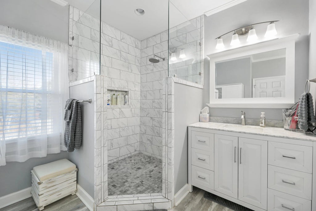 0.30 Lowcountry Living Designed for Today's Lifestyle!Welcome home to this beautifully maintained Lowcountry-style home offering the perfect blend of classic Southern character and modern convenience- ideal for families, multigenerational households, and anyone looking for a relaxed, welcoming place to call home. Tucked away on a cul-de-sac, this property greets you with a gracious wrap-around porch shaded by a magnificent live oak tree- the picture perfect setting for morning coffee or evening sweet tea. The side-load garage enhances curb appeal while providing easy, functional access. Inside, the gleaming wood floors and cozy brick fireplace create awarm and inviting focal point perfect for gathering with family and friends. The flexible layout easily accommodates a variety of furniture arrangements, giving buyers the freedom to make the room their own. With neutral tones and a move-in ready feel, this comfortable living area flows seamlessly into adjoining spaces. Designed with both style and function in mind, the kitchen showcases crisp white cabinetry, granite countertops, and stainless steel appliances, including a desirable double oven. A spacious center island provides additional prep space, storage, and casual seating, making it the perfect gathering spot. Adjacent to the kitchen is a delightful sunroom, a bright and inviting space that connects your kitchen to the outdoors. Windows flood the room with sunshine, creating an uplifting ambiance perfect for year round enjoyment. Imagine yourself unwinding in the afternoon with a good book. The airy feel and direct access to the backyard make this sunroom a truly special feature, offering endless possibiities for relaxation and entertaining. The spacious owner's suite is conveniently located on the first floor, making this home ideal for aging-in-place or multigenerational living. You will experience your personal oasis with this stunning, updated ensuite. A spacious shower features elegant marble-look tile, built-in niche to store your essentials and a mosaic tile floor add a touch of sophisticated detail. Complementing the shower is a double vanity with lots of storage. This is more than just a bathroom; it's a sanctuary designed for relaxation and rejuvenation. Upstairs you'll find two additional bedrooms plus a large finished room over the garage (or 4th bedroom). The secondary bedrooms are generously sized with additional storage in the dormer areas. Another updated bath is conveniently located in the hall to service the bedrooms. The bonus space offers incredible versatility with both interior access and a private exterior entrance-perfect for a guest suite, home office, media room, teen retreat, or college graduate needing a temporary place to live while saving funds to purchase his/her home. A third full bathroom is located in the bonus room for easy access. Families will love the location-just minutes from schools, grocery stores and medical facilities-while outdoor enthusiasts will appreciate being within walking distance to the Santee Canal Park with 195 scenic acres featuring walking trails, bird watching, canoeing, educational programs, rich Berkeley County history and Lowcountry scenery right in your backyard. This home has been lovingly cared for and thoughtfully updated, giving buyers peace of mind for years to come. Major improvements include: +Roof replaced in 2021 +Both HVAC systems replaced within the last 5 years (including ductwork & crawl space encapsulation) +Windows replaced 2011 +Garage Doors replaced 2021 +Some flooring replaced 2023 Whether you are looking for space to grow, room for extended family, or simply a welcoming Lowcountry retreat, this home checks every box.