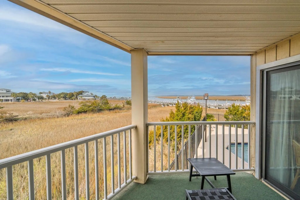 1175 RARELY AVAILABLE 3 Bedroom, 3 Bath corner villa offering stunning views of Big Bay Creek, the marina, marsh & the South Edisto River! Open, spacious layout including fully updated kitchen with granite countertops and all appliances including a new refrigerator. Relax and enjoy the spectacular sunsets from one of two covered porches. Sold beautifully furnished, turn key. The popular Bay Creek Villas are gated and include an onsite pool, exercise room, elevator and private storage unit. Excellent rental potential.