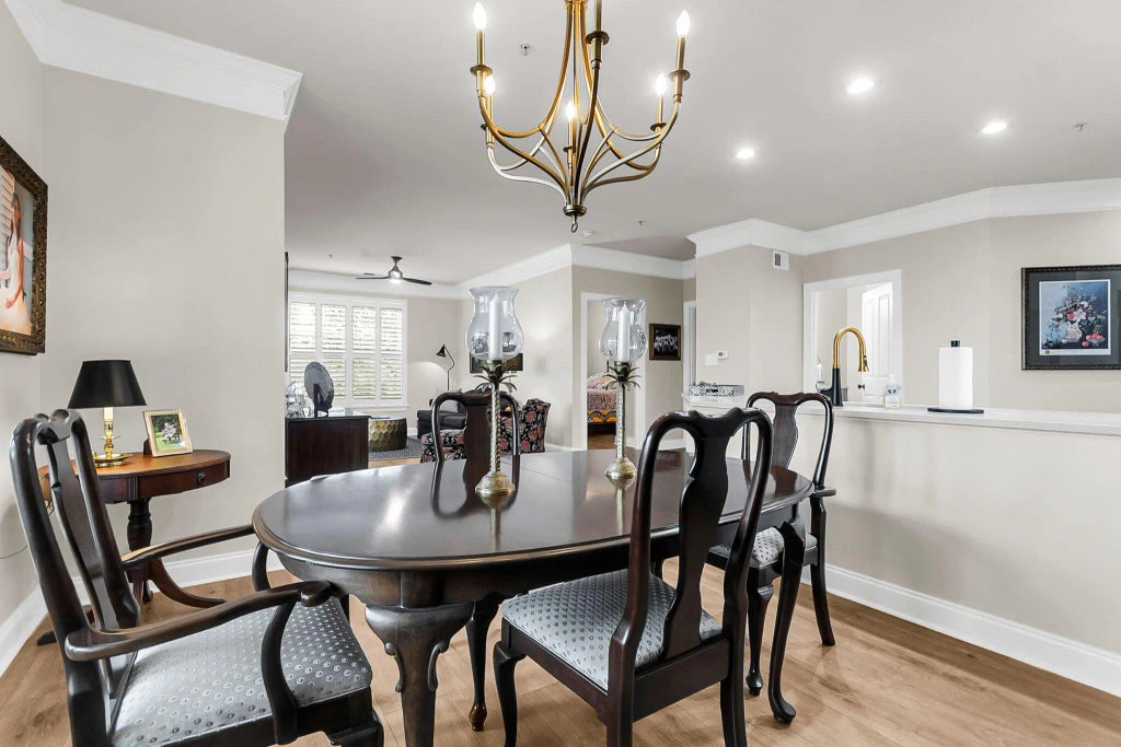 1321 ***Ask about the possibility of receiving 1% reduction in interest rate and free refi.*** Welcome to The Arboretum, a charming condo community tucked into the heart of West Ashley. This beautifully updated first floor residence combines generous living space with an unbeatable location, offering both comfort and convenience in one inviting package.From the moment you step inside, you are greeted by a bright, open layout filled with natural light, tall ceilings, crown molding, and gorgeous new flooring. New fans and ceiling light fixtures throughout, along with custom plantation shutters, add both style and function to every room. The kitchen is a true showpiece featuring new stainless steel appliances, updated white cabinetry and quartz countertops, a marble backsplash,attractive hardware, and a spacious pantry. The kitchen flows seamlessly into the dining area where you can enjoy views of the porch and peaceful surroundings. The welcoming family room showcases a custom built in TV cabinet and opens into a versatile sunroom/office space bathed in sunlight. From here, step out onto the private back porch complete with stone flooring and a tongue and groove ceiling, creating a perfect place to relax. The primary bedroom serves as a calming retreat highlighted by a striking accent wall and a completely renovated ensuite bathroom with a beautiful vanity, updated flooring, a tile step in shower, and a custom walk in closet. An additional bedroom, a beautifully renovated full bathroom with a modern vanity and subway tile surround tub, and a thoughtfully updated custom laundry room complete the interior. This unit also includes a designated parking space in the garage directly beneath the building along with a private storage area. The building offers the convenience of elevators and interior hallways. An updated water heater provides added peace of mind. Residents of The Arboretum enjoy wonderful amenities including a clubhouse, fitness center, and swimming pool, and the community is pet friendly. Ideally located less than a mile from shopping and dining options and Bon Secours St Francis Hospital, just over a mile from I-526, 4.5 miles from Avondale, 6.3 miles from downtown Charleston, 6.7 miles from Tanger Outlets, and 7.4 miles from Charleston International Airport, this condo places you close to everything. Do not miss the opportunity to make this beautifully updated home yours.