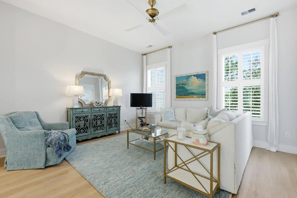 0.10 Welcome to 1110 Studdingsail Lane in The Cove at Folly Beach -- a beautifully maintained townhome just one mile from the beach. Built in 2022 and thoughtfully upgraded, this 4-bedroom, 3.5-bath home offers over 2,200 square feet of elevated coastal living with some marsh views. The open-concept main living area is filled with natural light and features luxury vinyl plank flooring throughout. Custom plantation shutters throughout enhance the home's coastal style while providing excellent light control and privacy. . The kitchen is designed for both everyday living and entertaining, with quartz countertops, stainless steel appliances, a gas range, double wall ovens, microwave, and a large island. A formal dining room opens to the front porch, while a powder room and flexiblepurpose room complete this level. A private elevator runs from the garage to the main and second floor for added convenience. The primary suite is spacious and serene, with a walk-in closet and spa-like bath. Two additional bedrooms, a full bath, and a laundry room are also located on the second floor. The third level features a large bedroom or loft with a full bath and an expansive balcony overlooking the marsh - a perfect retreat. A two-car garage provides ample storage and easily accommodates a golf cart, bikes, kayaks, and beach gear. An electric bike will convey! The community offers low-maintenance living, including landscaping and road upkeep, plus access to a deep-water dock (2189 Folly Rd.). If you're looking for a turn-key home close to Folly Beach, yet tucked away from the crowds - this one truly checks all the boxes.