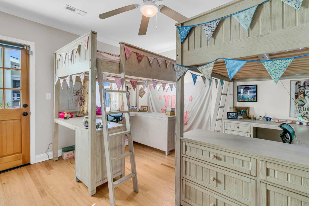 0.14 Situated on an oversized corner lot in Wagener Terrace, this single story 3-bedroom, 3-bath Charleston home blends bright, updated interiors with exceptional outdoor living--anchored by a private in-ground pool.The elevated lot is beautifully curated with updated landscaping, artificial turf for a low-maintenance lawn, palm trees, architectural uplighting and a privacy fence. The inviting front yard expands the home's living space with a full front porch and a built-in outdoor kitchen, perfect for entertaining. The backyard continues the experience with a new Trex deck lounge area that flows down to the custom in-ground saltwater pool. Offering both heating and cooling for year-round enjoyment & designed with entry steps, a sun ledge, and a deep end for the perfect cannonball!Inside, hardwood floors with decorative inlays and abundant natural light set the tone throughout. Open living and dining spaces connect seamlessly to a spacious kitchen with peninsula seating, ample cabinetry, and granite countertops. A functional mudroom just off the kitchen provides practical storage and direct access to the backyard. The home features a split-bedroom layout and two separate living areas, offering flexibility and privacy. The primary suite includes an ensuite bath with double vanity and a walk-in closet with custom shelving. A rear bedroom also features an ensuite bathroom and direct access to the backyard and poolideal as a second primary suite or private guest retreat. From its elevated corner-lot setting, curated outdoor spaces, off-street parking, and saltwater pool, to its flexible interior layout, dual primary suites, and abundant storage, this home is a true Charleston gem. Located just minutes from Hampton Park, Corrine Jones Park, and popular dining destinations including Park & Grove, Harbinger, and OK Donna, this Wagener Terrace residence captures the essence of Lowcountry living!