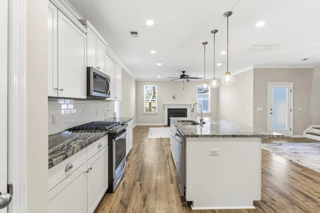 0.20 Welcome to 2115 Kemmerlin Street, a stunning 4-bedroom, 3-bath home nestled on a premium, nearly quarter-acre lot on Johns Island. The expansive backyard and screened porch offer a private oasis, with no immediate rear neighbors to interrupt your peace. Inside, the open floor plan on the main level invites you to entertain effortlessly, with the kitchen overlooking both dining and living areas. There is built in surround sound in the living room.- Soft-close cabinetry, a fireplace, and elegant crown molding create a refined atmosphere. Upstairs, the primary suite is a true retreat, boasting a seamless shower and a private balcony overlooking the front yard--perfect for morning coffee. A downstairs room offers flexibility for guests or an office. With a tankless water heater, detachedgarage, and long driveway, comfort meets practicality. Plus, you're steps from the pool, park, and walking trails, blending lifestyle and convenience. Your dream home is waitingcome experience it today!