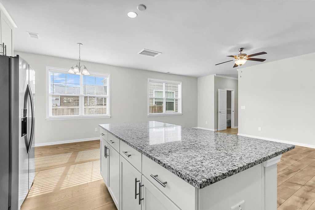 0.13 Potential 3.375% assumable mortgage for qualified buyers. First floor primary bedroom and resort like amenities steps from this property!Welcome to this move-in ready Charleston-style home in one of Moncks Corner's most sought-after communities, Foxbank Plantation. Directly across the street from the property, you'll find neighborhood amenities including two swimming pools, fishing docks, and a park, while Foxbank Elementary School is located within walking distance. The home also offers a quick commute to the Naval Weapons Station and Coast Guard Station, making it an excellent option for military buyers. The freshly painted front porch and columns add immediate curb appeal.Inside, the open-concept floor plan is designed for comfortable living and entertaining.The kitchen features granite countertops, stainless steel appliances, ample cabinet space, and a pantry, all open to the living and dining areas. The first floor primary suite includes crown molding, double granite vanities, tile flooring, a garden tub, separate tiled shower, and a spacious walk-in closet. Upstairs, a large loft offers flexibility for a media room, home office, or playroom, along with two additional bedrooms, a full bathroom, and a dedicated laundry room. A detached two-car garage provides added storage and parking. Foxbank Plantation residents enjoy access to a fitness center, dog park, and scenic walking trails, with shopping, dining, and Lake Moultrie just minutes away. Downtown Charleston and area beaches are also within easy driving distance. If you're searching for a move-in ready home in Moncks Corner with a main level primary suite, strong community amenities, proximity to military bases, and the opportunity to assume a low interest rate mortgage, this home offers a compelling combination of value, location, and lifestyle.