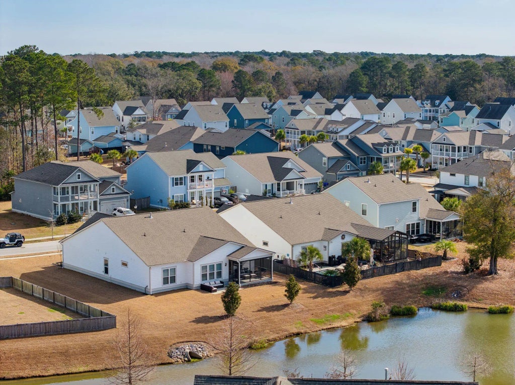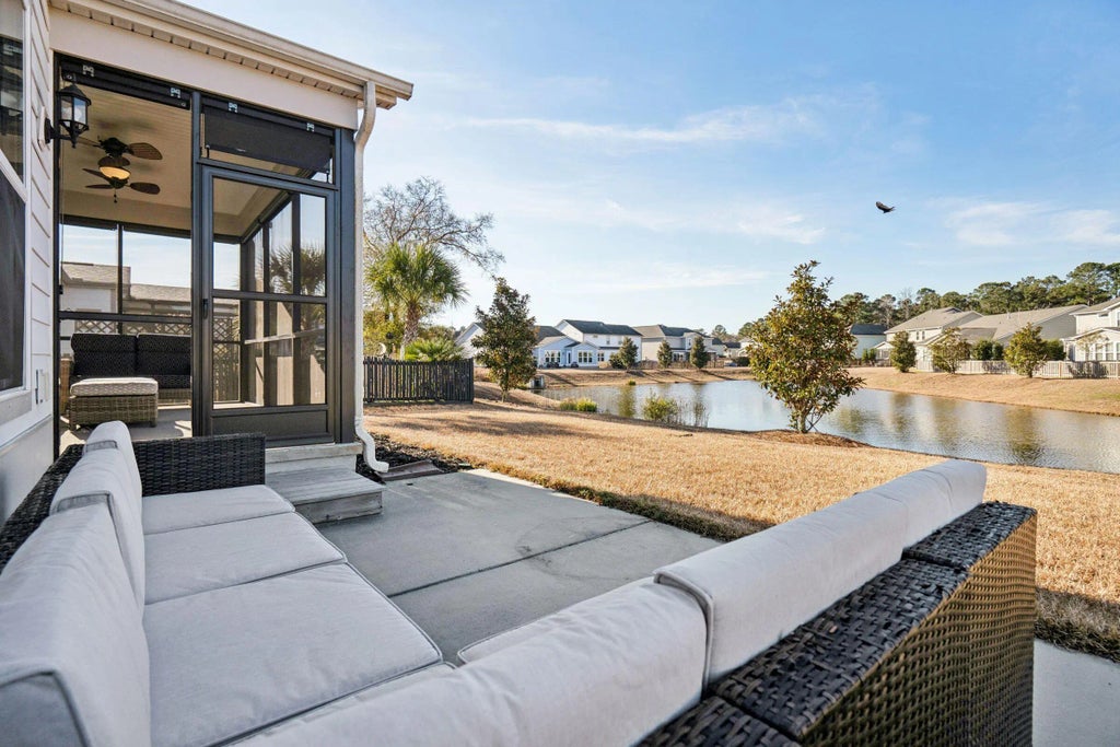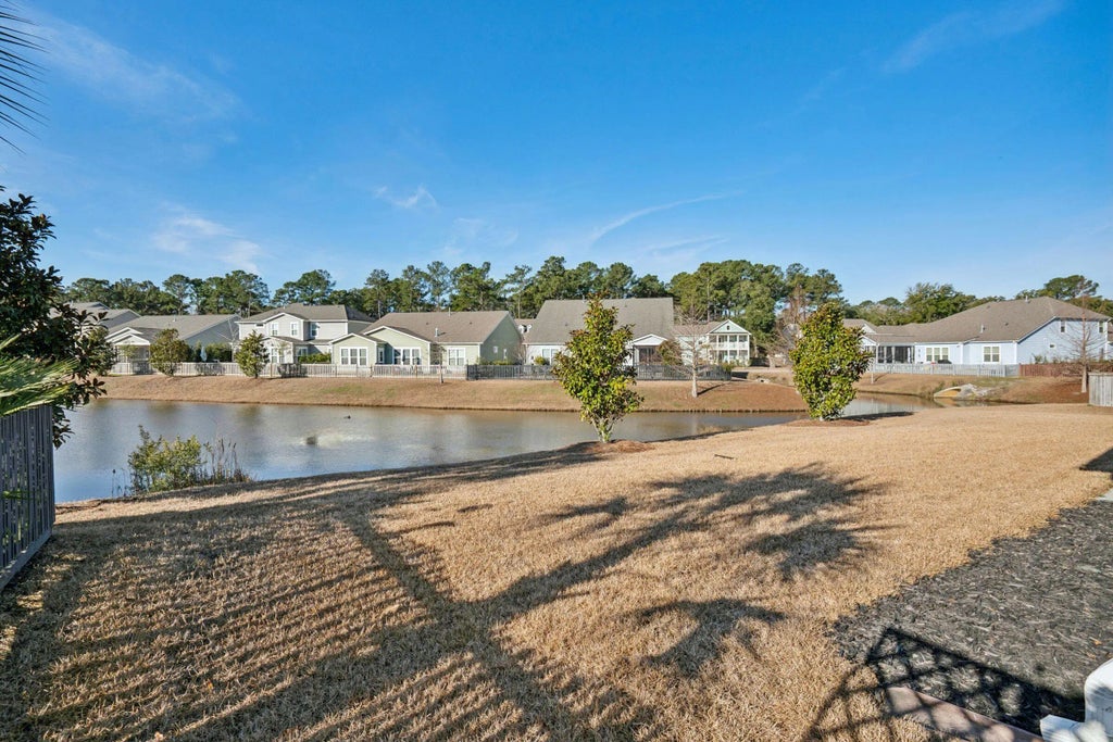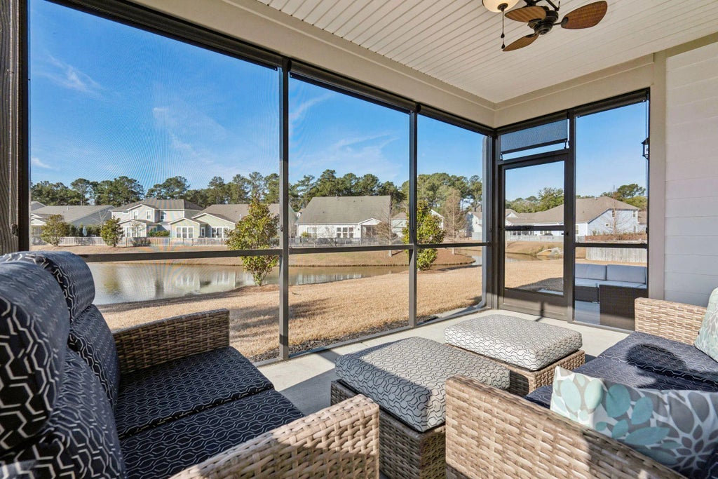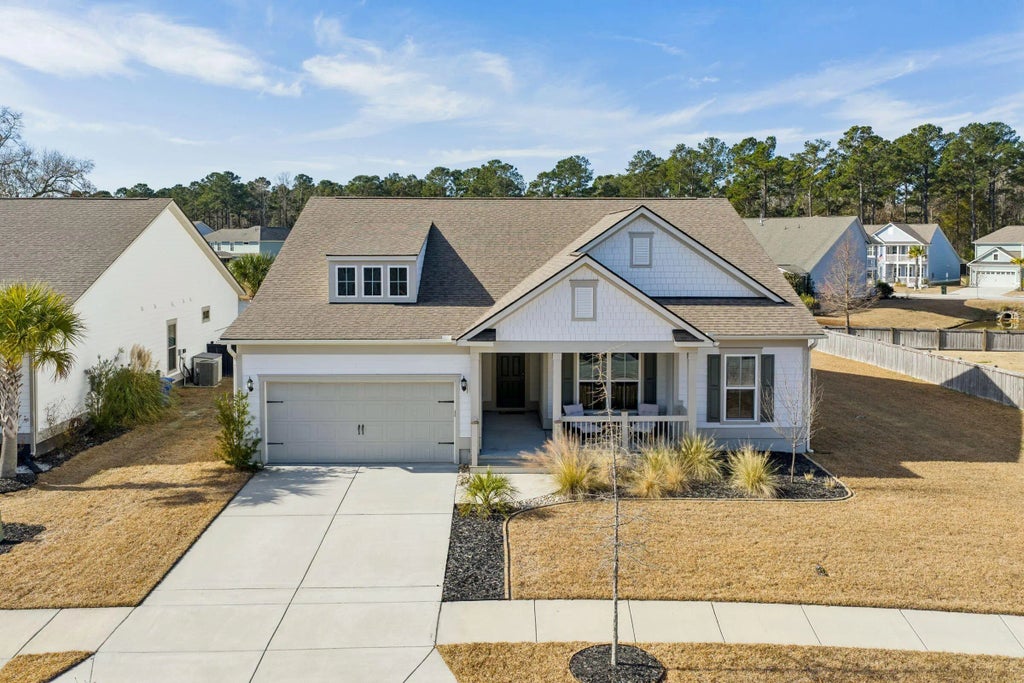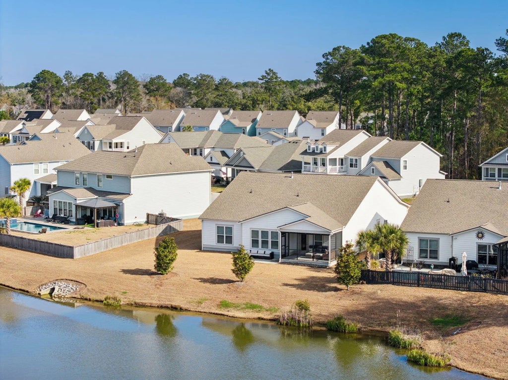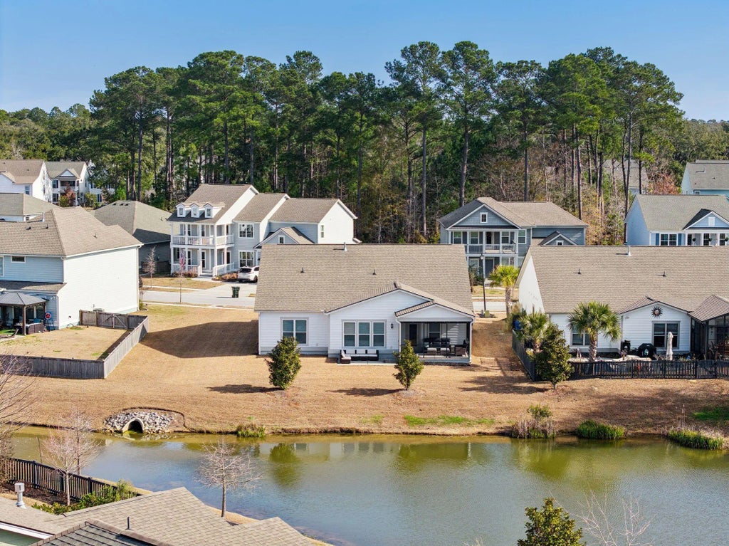 0.20 Single-story living and pond views are standout features of this 2021 Pulte-built Amberwood plan in Oakfield, introduced by an expansive covered front porch and clean coastal exterior. One of the few true one-level homes available in the neighborhood, it offers everyday convenience without stairs. A wide driveway provides generous off-street parking alongside the two-car garage, while the owners' consistent care of the lawn enhances the home's curb appeal and welcoming presence. Stepping inside, the foyer features wainscoting and custom built-in storage and opens to a private office enclosed by glass French doors. Crown molding and matching wainscoting details give the space both character and functionality, creating a comfortable work-from-home setting, library, or quiet retreat whileremaining connected to the front of the home. Just past the office, a hallway to the right leads to the secondary bedroom wing. A convenient half bath is positioned along the hall, while the corridor continues to a spacious bedroom and then turns toward a full bathroom with a double vanity and another well-sized bedroom, creating comfortable separation from the main living areas. Returning toward the foyer, the entry from the two-car garage is positioned opposite the bedroom hallway and connects to the laundry room. Both the garage and laundry include utility sinks, and the garage also features overhead storage that will remain, adding practical everyday functionality. The home then opens into the main living space where the gathering room, dining area, and gourmet kitchen connect in one continuous layout overlooking the backyard and pond. The kitchen is centered around a large island with quartz countertops, subway tile backsplash, and stainless appliances, while the four-foot rear extension enhances the living area and creates an open, comfortable space for both everyday living and entertaining. Just off the kitchen, the planning center provides a convenient workspace and leads to the flexible fourth bedroom, which can serve as a guest room, hobby or music room, playroom, second office, fitness space, or den, plus more depending on your needs. Tucked privately at the back of the home, the owner's suite overlooks the pond and includes a spacious bath with double vanity, quartz countertops, a soaking tub, and separate shower, along with a massive walk-in closet, creating a comfortable retreat separated from the secondary bedrooms. Off the main living area, a covered screened lanai and extended patio overlook the serene pond, providing a comfortable outdoor space for relaxing or gathering. Located within the Oakfield community, residents enjoy access to a neighborhood pool, clubhouse, and walking trails while remaining conveniently positioned to Johns Island dining, shopping, and routes leading toward downtown Charleston and area beaches.